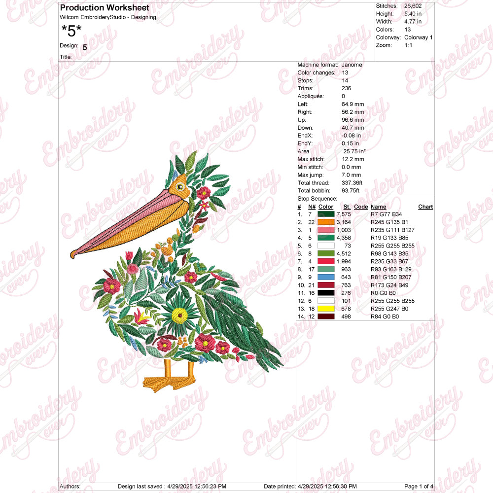 The Beautiful Floral Pelican Embroidery Design captures the elegance and charm of the pelican, intricately adorned with delicate floral patterns. This design combines the natural grace of the bird with artistic floral embellishments, resulting in a visually striking motif perfect for enhancing fabric projects, apparel, or home décor. Expertly crafted, the design offers fine details that highlight the pelican’s distinctive features, such as its beak and feathers, while the floral elements add a touch of sophistication and nature-inspired beauty. Ideal for embroidery enthusiasts looking for a unique and refined design, it brings a harmonious blend of wildlife and botanical art to your creations.