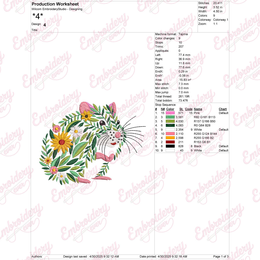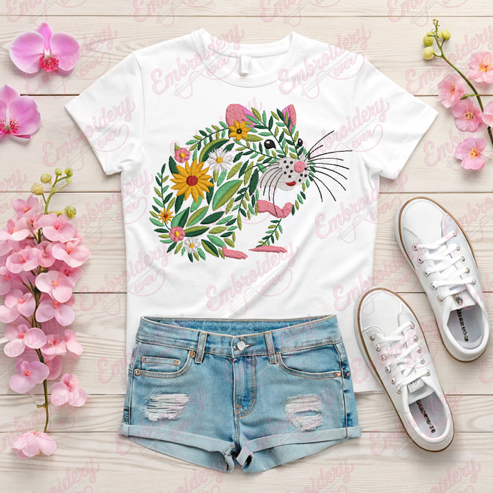 The Colorful Botanical Hamster Embroidery Design is a meticulously crafted pattern that combines vibrant botanical elements with the charming figure of a hamster. This design features intricate stitching details that bring out the natural textures of leaves, flowers, and the hamster’s fur, making it ideal for adding a lively, nature-inspired touch to fabric projects. Perfect for crafters with an eye for detail, it enhances apparel, home décor, or accessories with rich colors and refined craftsmanship. Its multi-layered thread work ensures durability and a professional finish, offering a blend of artistic flair and lasting quality for embroidery enthusiasts.