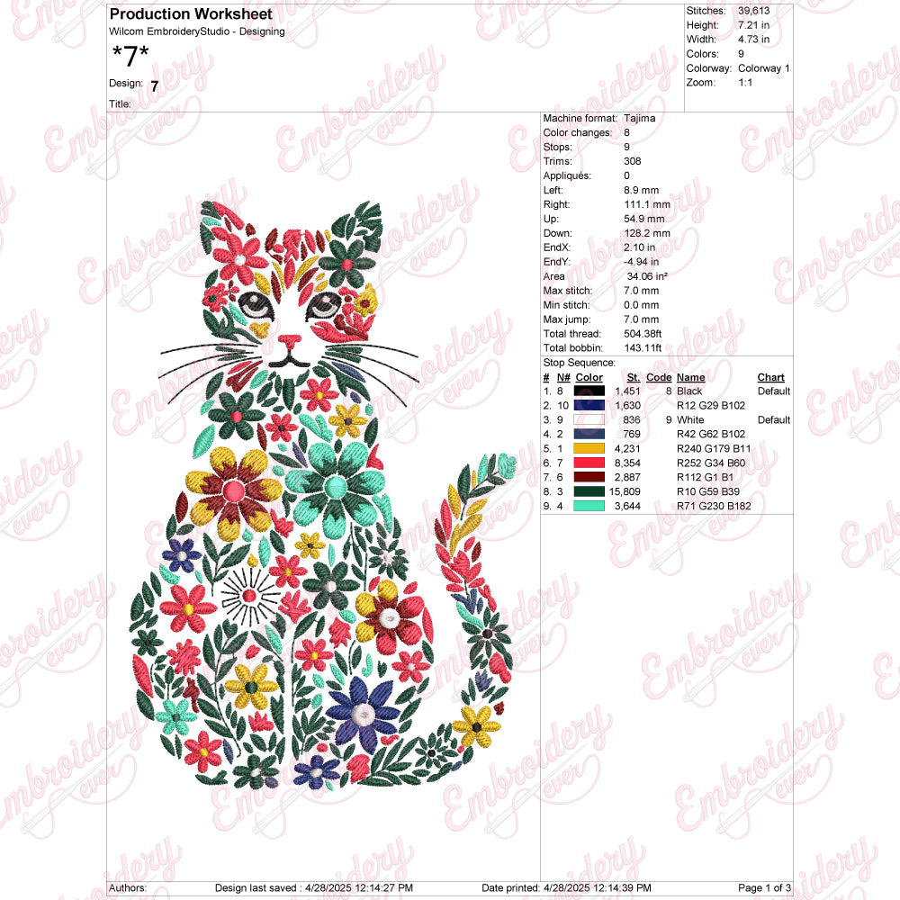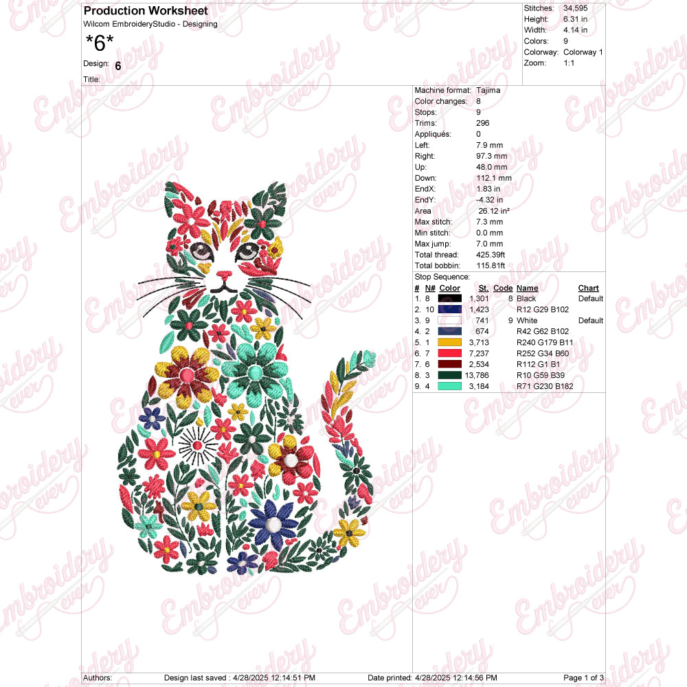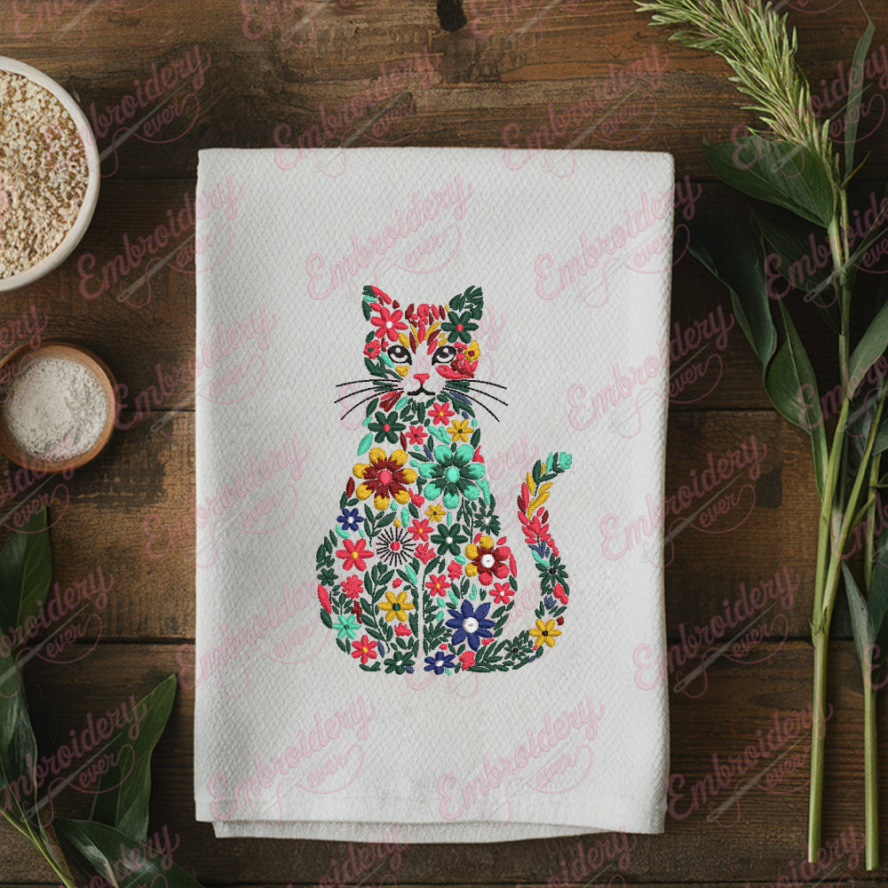 The Colorful Botanical Kitty Cat Embroidery Design offers a vibrant and detailed representation of a charming cat intertwined with botanical elements. Designed with expert precision, this embroidery pattern captures the delicate textures of fur and leaves using a rich palette of colors, enhancing depth and visual interest. Ideal for advanced embroiderers, it combines intricate stitch techniques that bring life to both the feline subject and surrounding flora. This design suits a variety of fabric types and projects, from apparel to home décor, allowing you to add a sophisticated, nature-inspired touch to your creations while showcasing skilled craftsmanship.