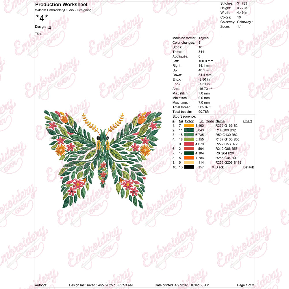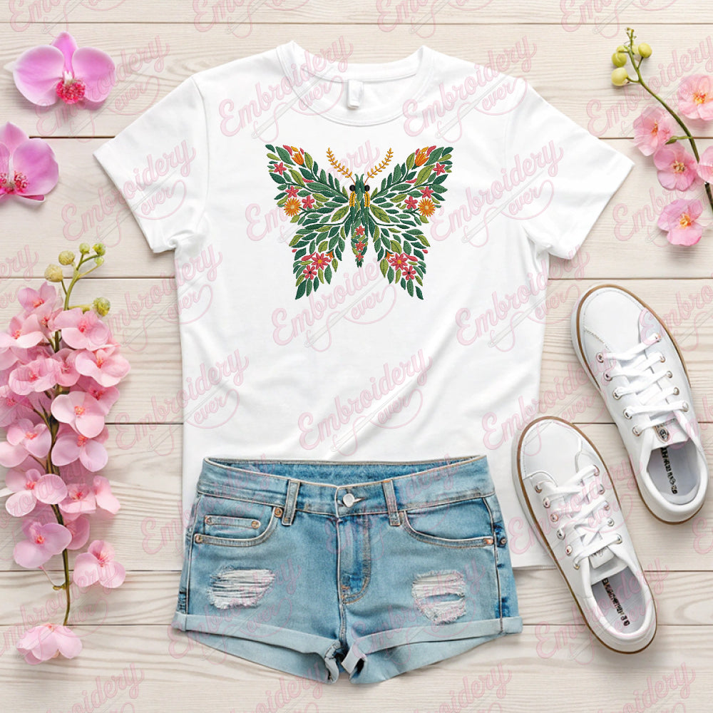 The Colorful Botanical Moth Embroidery Design combines intricate artistry and vibrant hues to create a visually captivating piece. This design features a delicately detailed moth, enriched with botanical elements such as leaves and flowers, rendered in a harmonious color palette that highlights the natural beauty of both insect and flora. Ideal for enhancing fabric projects, it offers an expert-level blend of complexity and elegance, providing depth through layered stitching techniques. Whether applied to apparel, accessories, or home décor, this embroidery pattern elevates items with its refined craftsmanship, making it a sophisticated choice for those seeking detailed and colorful needlework.