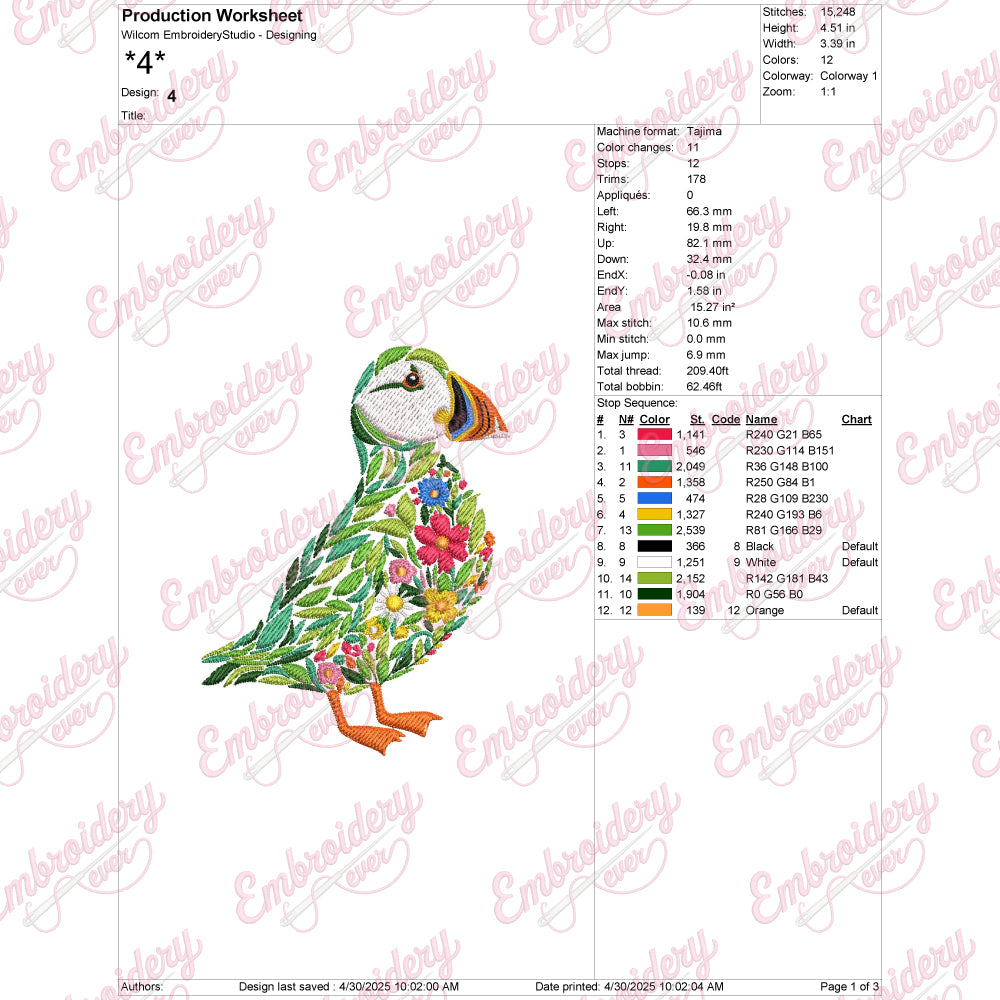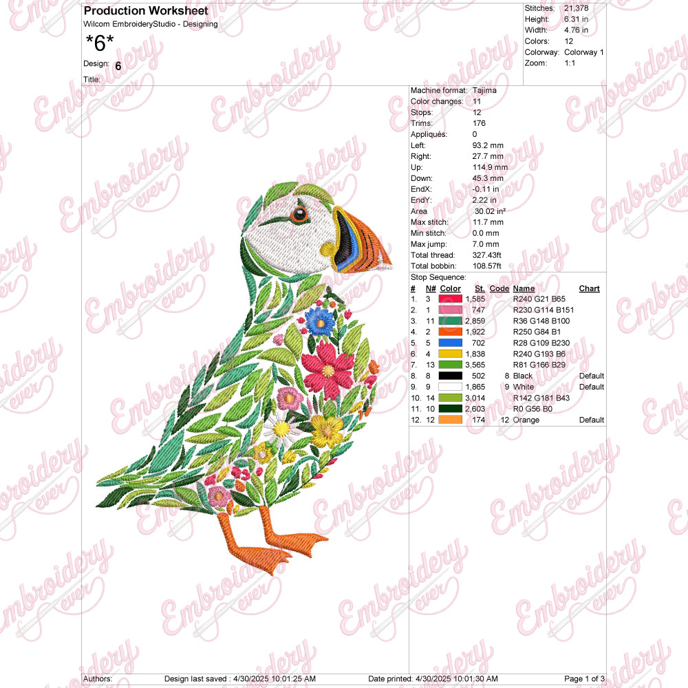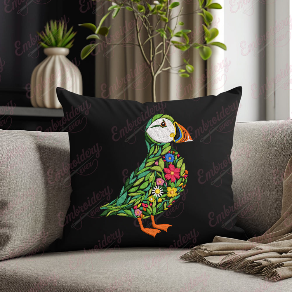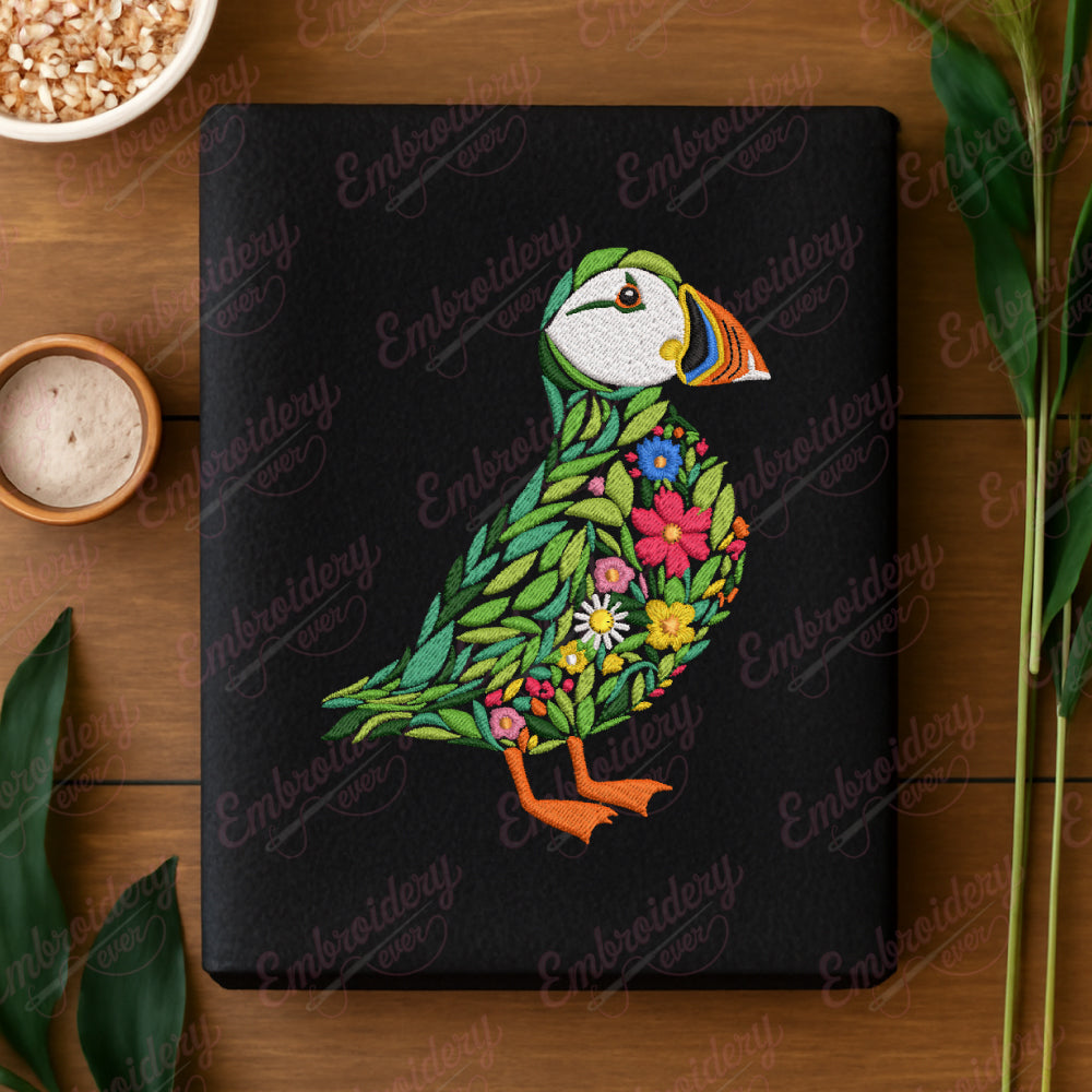 The Colorful Botanical Puffin Embroidery Design masterfully combines vibrant hues and intricate botanical elements to create a striking representation of the puffin. This design showcases meticulous stitch work to highlight the bird’s distinctive beak and feather patterns, infused with lush foliage motifs that enrich the overall aesthetic. Ideal for enhancing garments, accessories, or home décor, the detailed layering of colors offers depth and texture, making each embroidery noticeably lifelike. Crafted with precision for embroidery enthusiasts, this design promises a sophisticated finish that balances natural beauty with artistic flair, elevating any project to a refined, eye-catching statement piece.