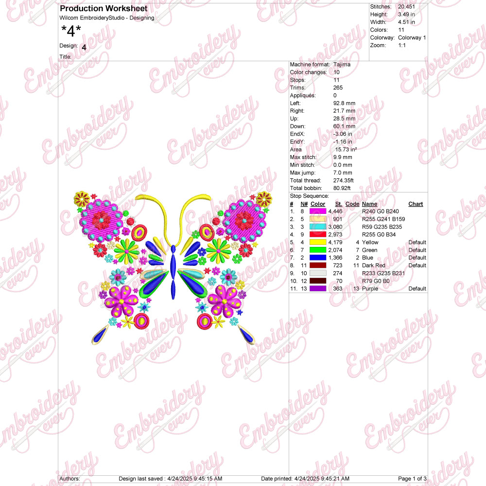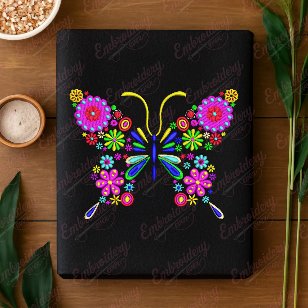 The Colorful Butterfly Embroidery Design showcases intricate craftsmanship with vibrant threads that bring each wing to life in a spectrum of rich hues. This design captures the delicate beauty and symmetry of a butterfly, making it an ideal choice for enhancing textiles with a touch of nature-inspired elegance. Perfect for embellishing garments, accessories, or home décor, the detailed stitching ensures durability and a refined finish. Its vivid colors and precise embroidery technique provide a striking visual impact, allowing crafters and designers to add a sophisticated, artistic element to their projects. This design balances complexity and clarity, suitable for both advanced and intermediate embroidery enthusiasts.