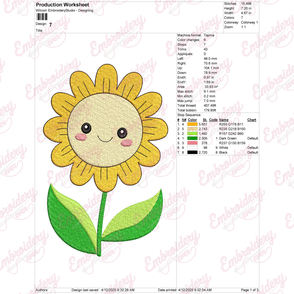 Let your creativity shine with this delightful Cute Sunflower embroidery design!