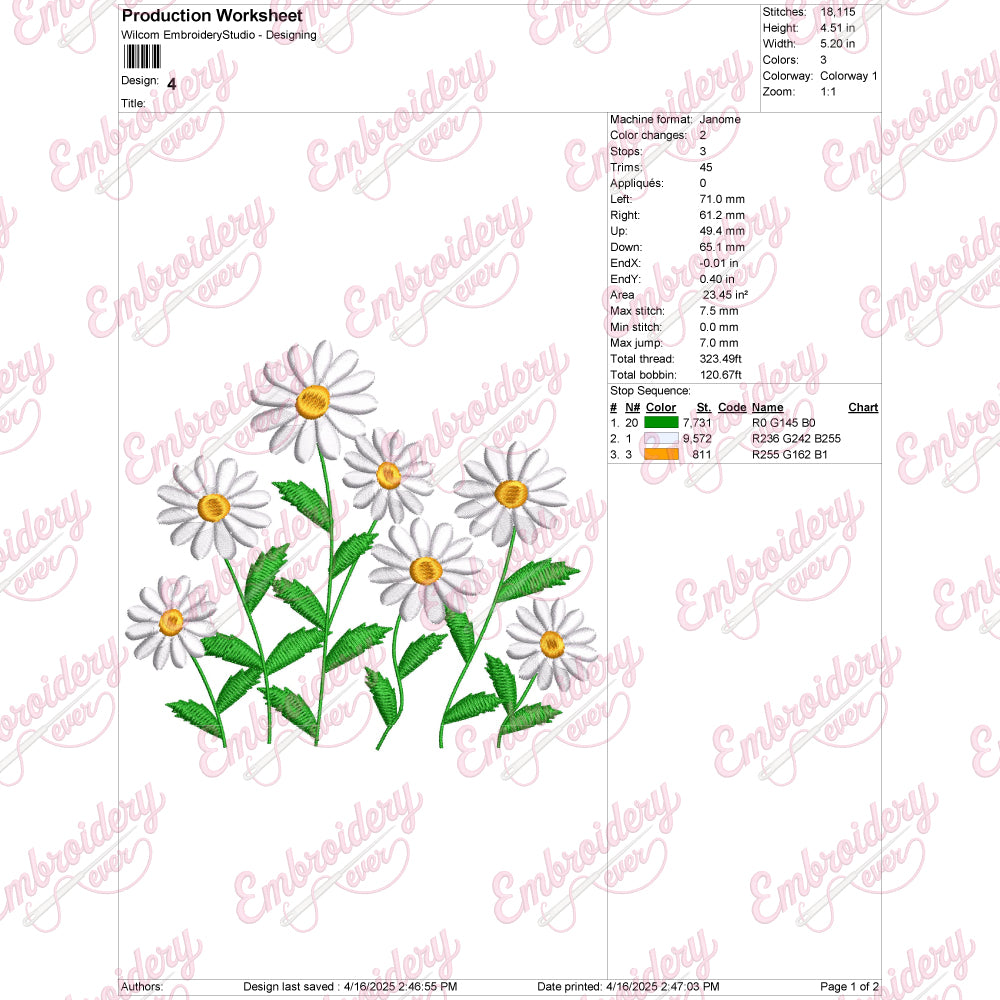 The Daisy Flower Embroidery Design captures the delicate beauty of daisies with intricate stitching that highlights each petal and the textured center. Crafted for precision, this design offers a balanced blend of elegance and simplicity, making it ideal for enhancing garments, accessories, or home textiles. Its detailed pattern ensures a refined finish, suitable for both machine and hand embroidery projects. The design’s versatility allows it to complement various fabric types and colors, providing a timeless floral motif that adds a touch of natural charm and sophistication to any creation. Perfect for those seeking expert-level embroidery artistry.