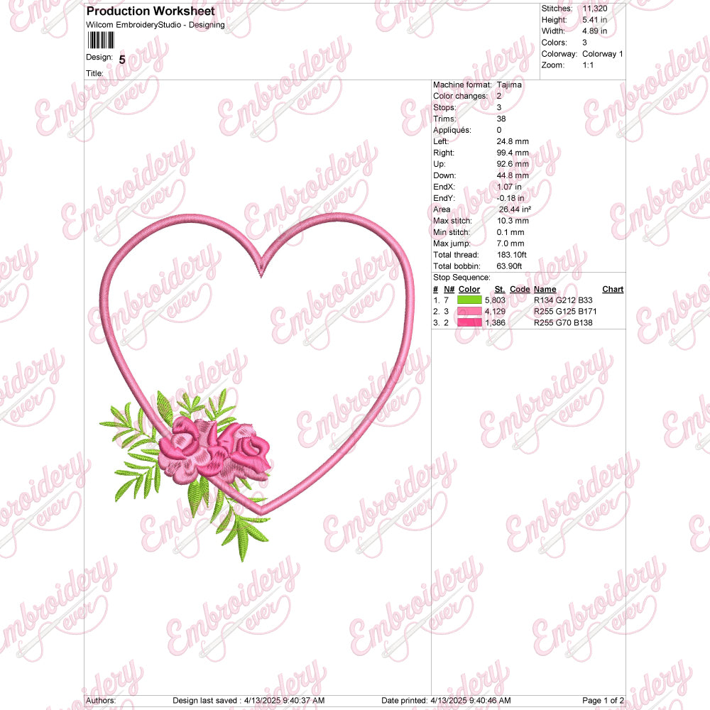 Elegant Heart Flower Digital Download Machine Embroidery Design