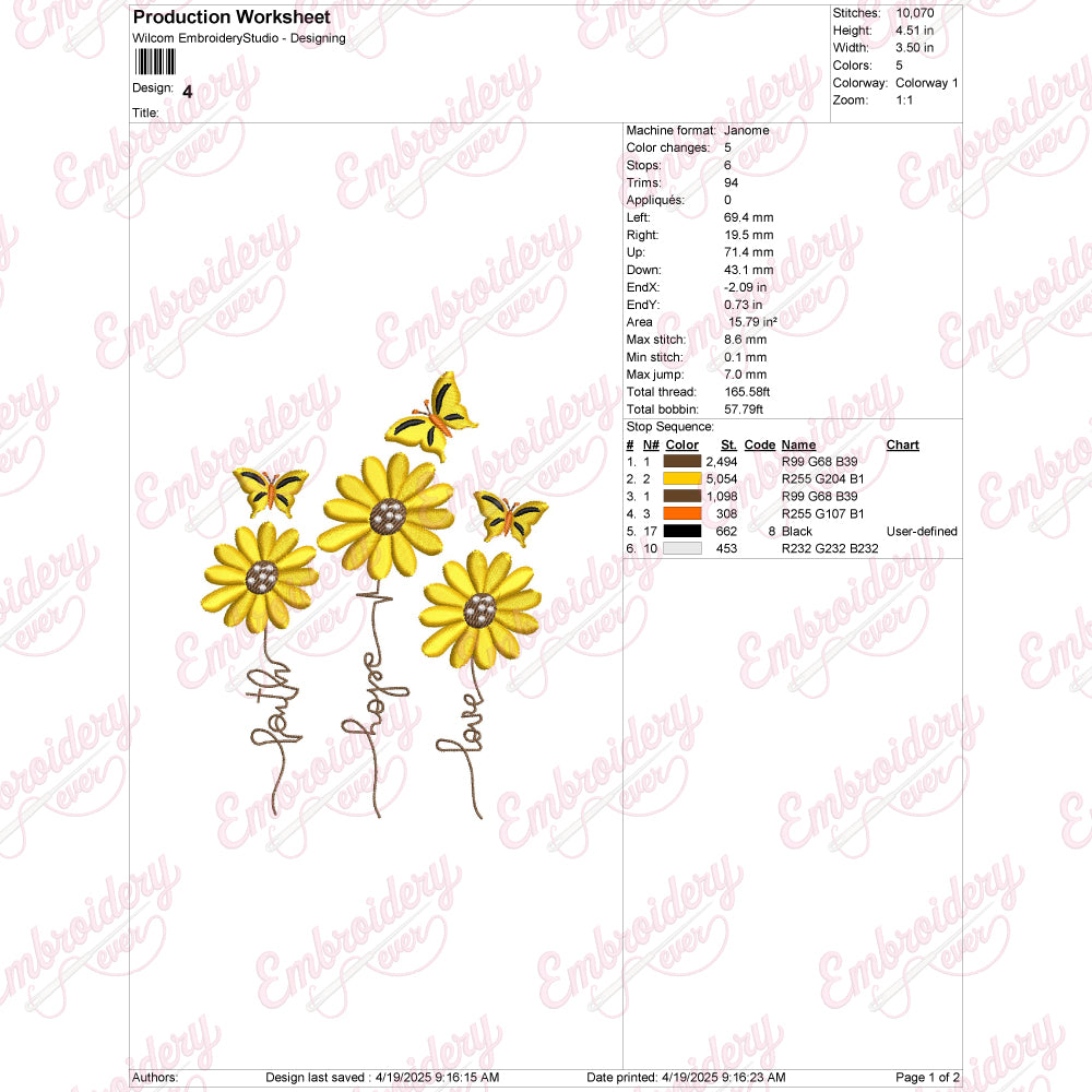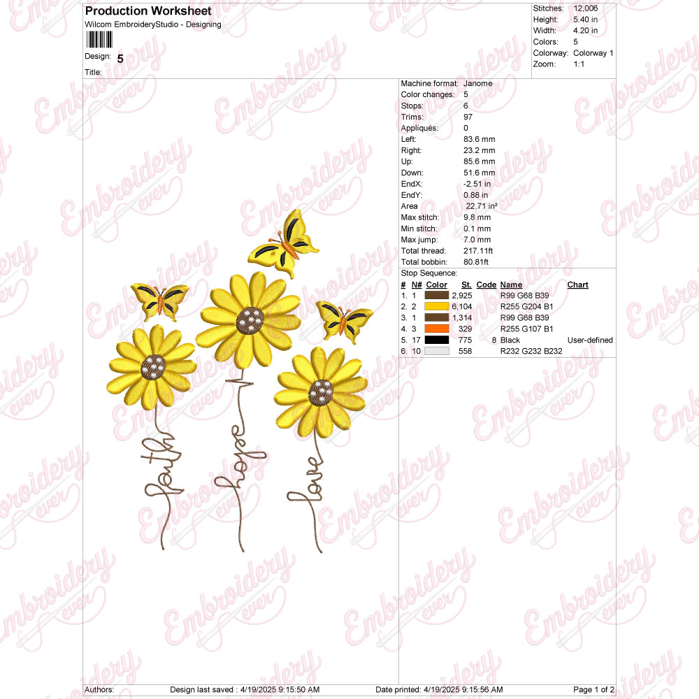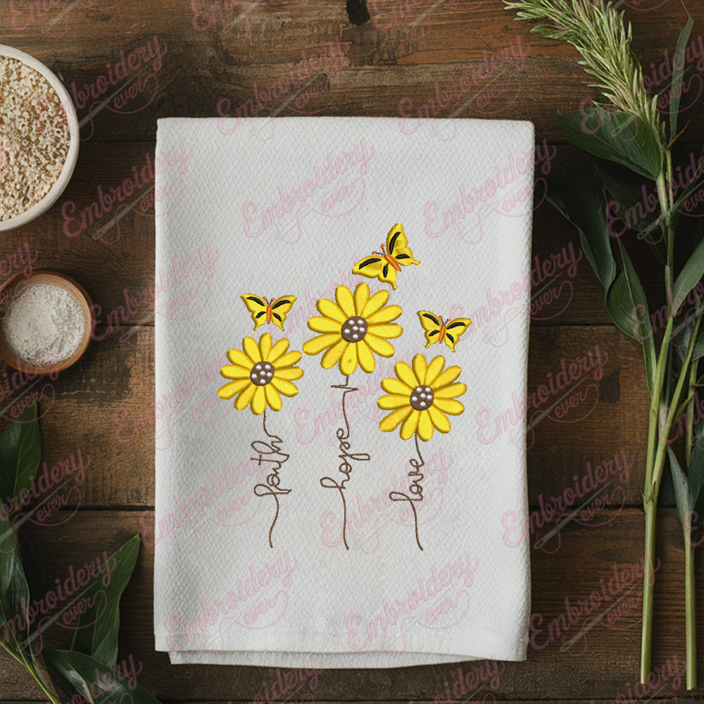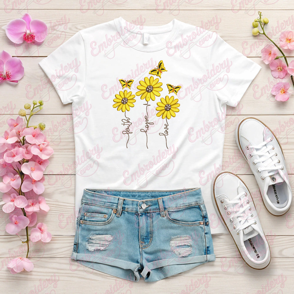 Let your creativity shine with this delightful Faith Hope Love Sunflower embroidery design!