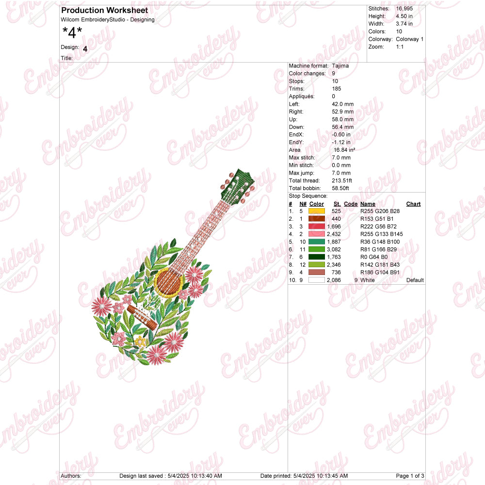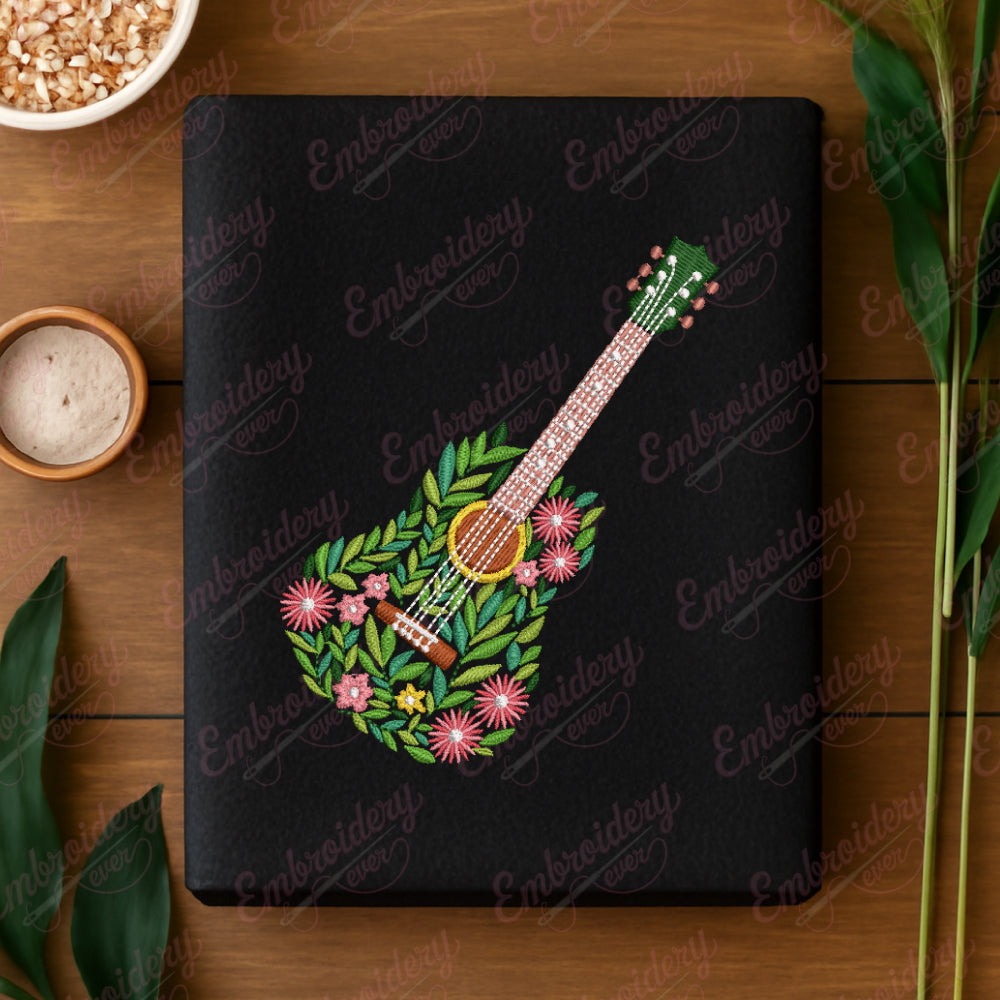 Let your creativity shine with this delightful Floral Guitar embroidery design!