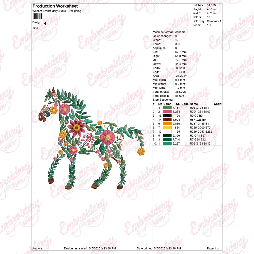 Let your creativity shine with this delightful Floral Horse embroidery design!