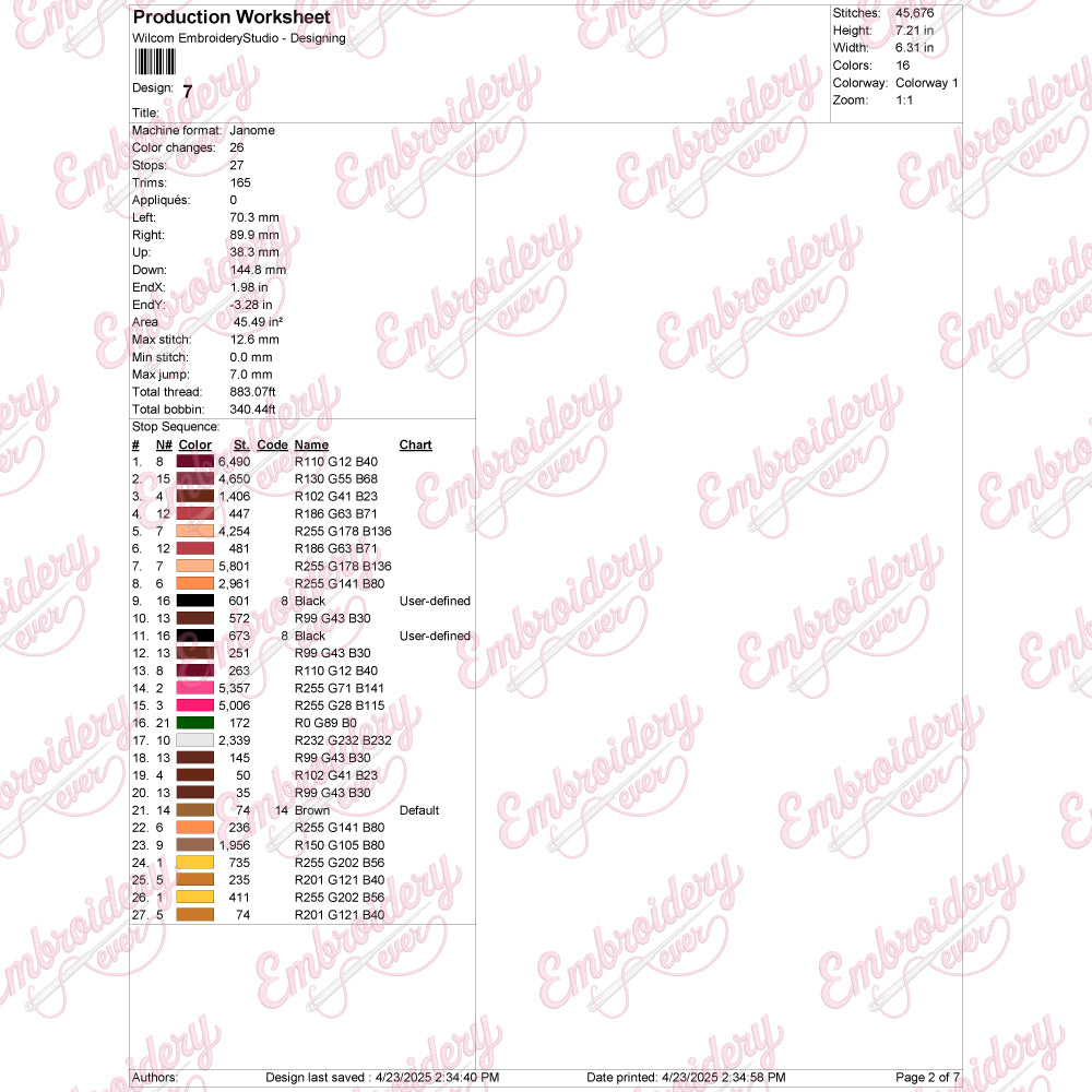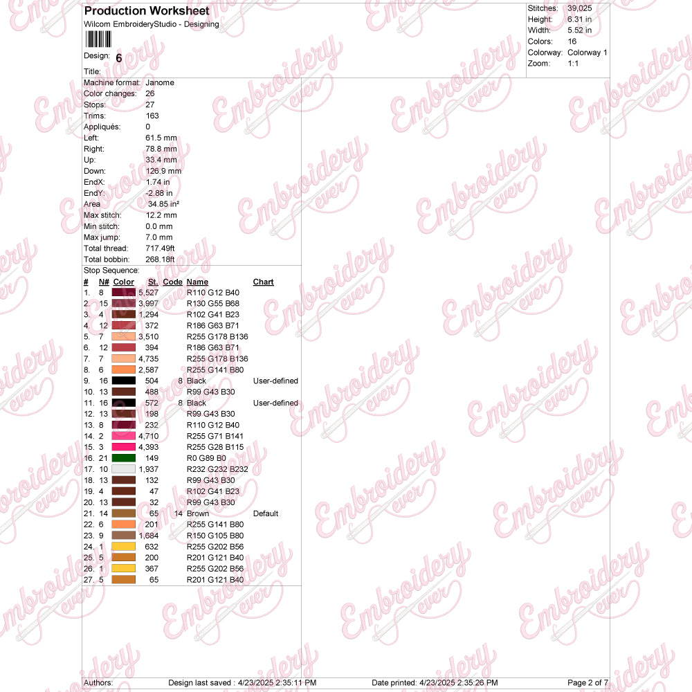 The Floral Lion Embroidery Design masterfully combines the majestic presence of a lion with delicate floral elements, creating a striking and sophisticated motif. This design showcases intricate stitching that highlights the lion’s powerful features while seamlessly integrating detailed floral patterns, adding a touch of elegance and artistry. Ideal for enhancing garments, accessories, or home décor, this embroidery design offers both visual impact and refined craftsmanship. Its balanced composition allows for versatile application, making it suitable for those seeking to express strength and beauty simultaneously through textile art. Perfect for expert embroiderers aiming to elevate their projects with a unique and captivating design.