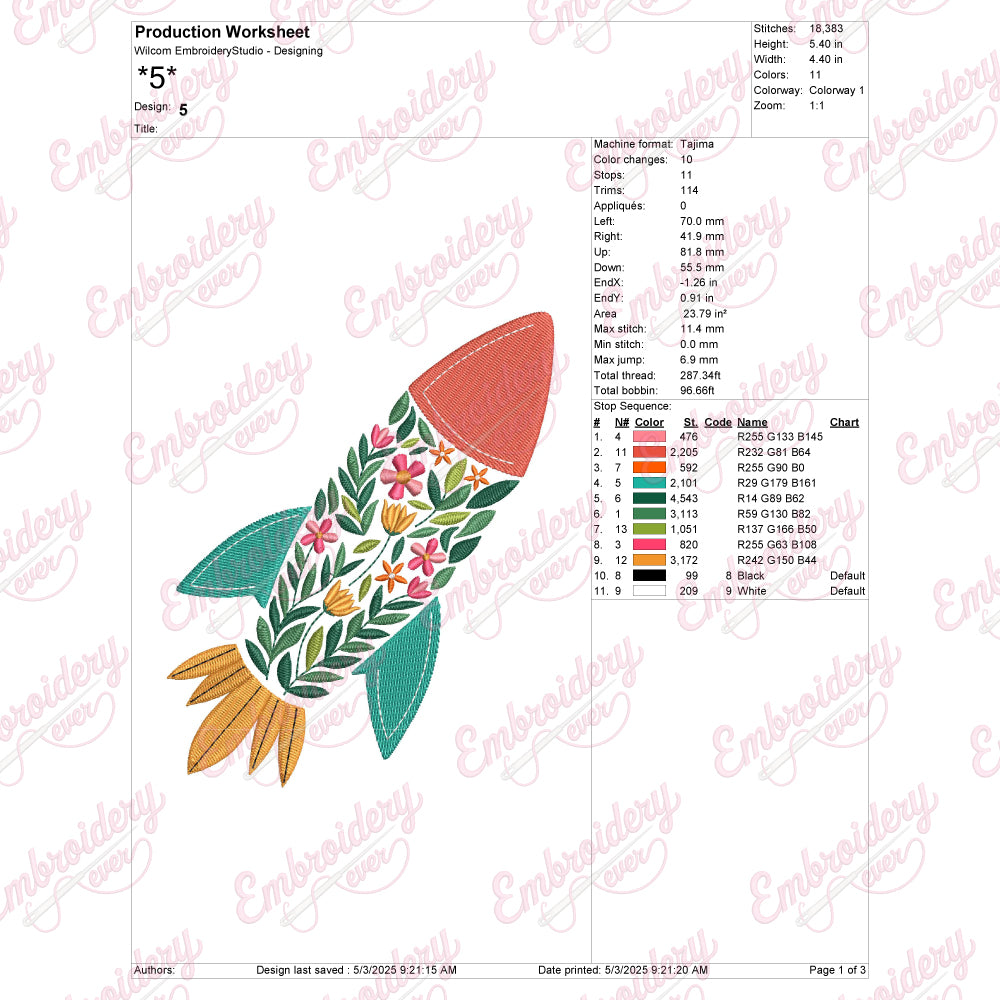 Let your creativity shine with this delightful Floral Rocket embroidery design!
