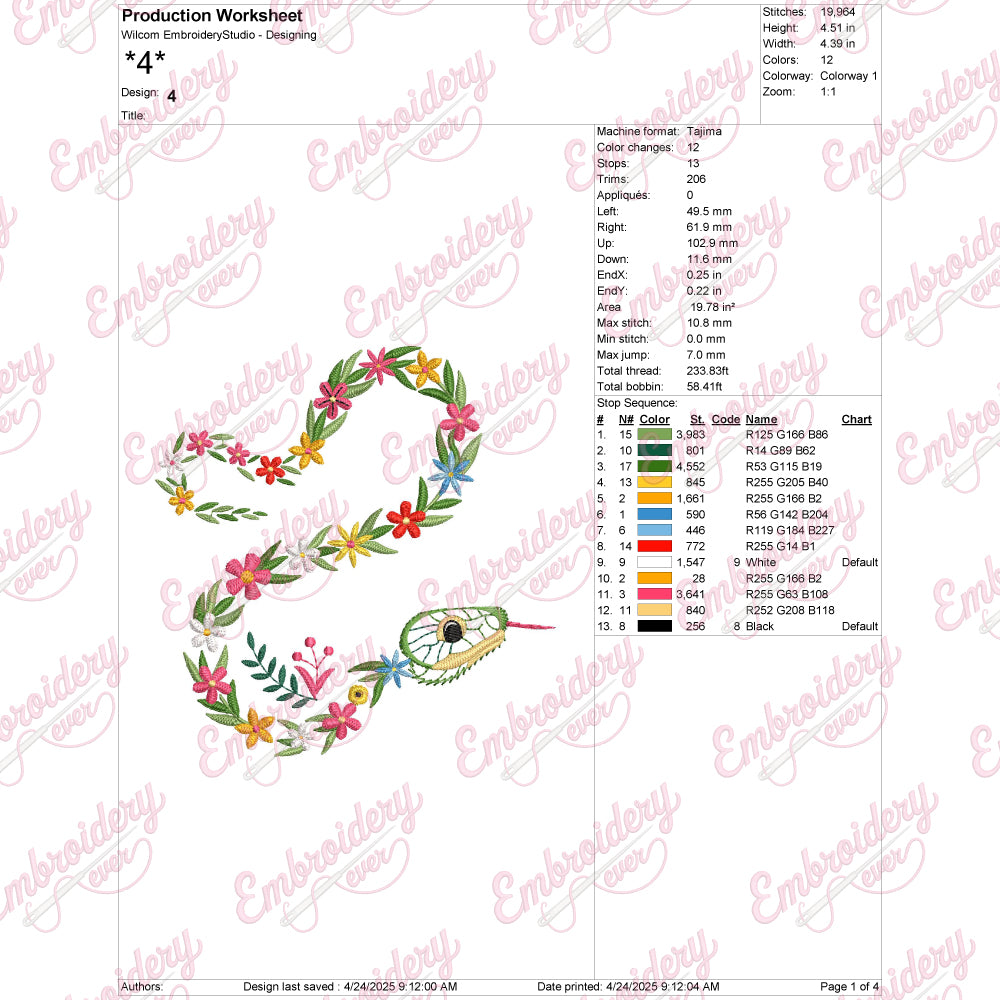 Let your creativity shine with this delightful Floral Snake embroidery design!