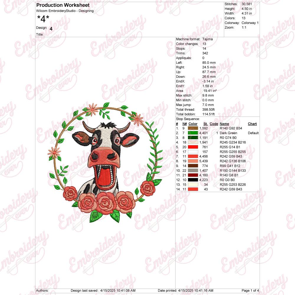 Let your creativity shine with this delightful Flower and Cow embroidery design!