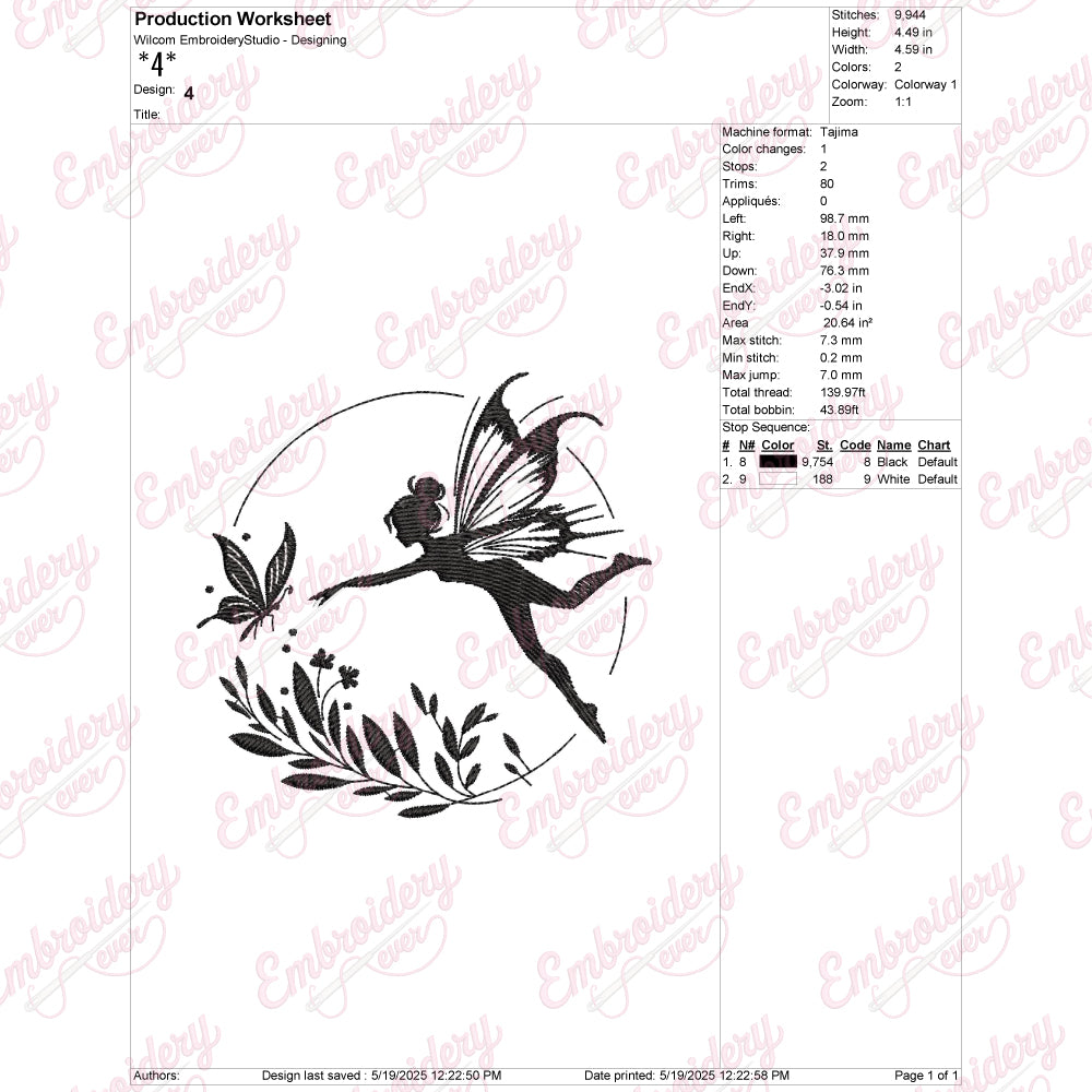 The Flower Fairy Embroidery Design captures the delicate charm of a whimsical fairy surrounded by blooming flowers. Crafted with intricate detail, this design brings an enchanting touch to any fabric, ideal for adding elegance to garments, home décor, or accessories. The fine stitching highlights both the fairy’s ethereal wings and the natural beauty of the floral elements, creating a harmonious balance of fantasy and nature. Suitable for advanced embroidery machines, the design ensures precise execution and durability. Perfect for those seeking to infuse their projects with a touch of magic and refined craftsmanship.
