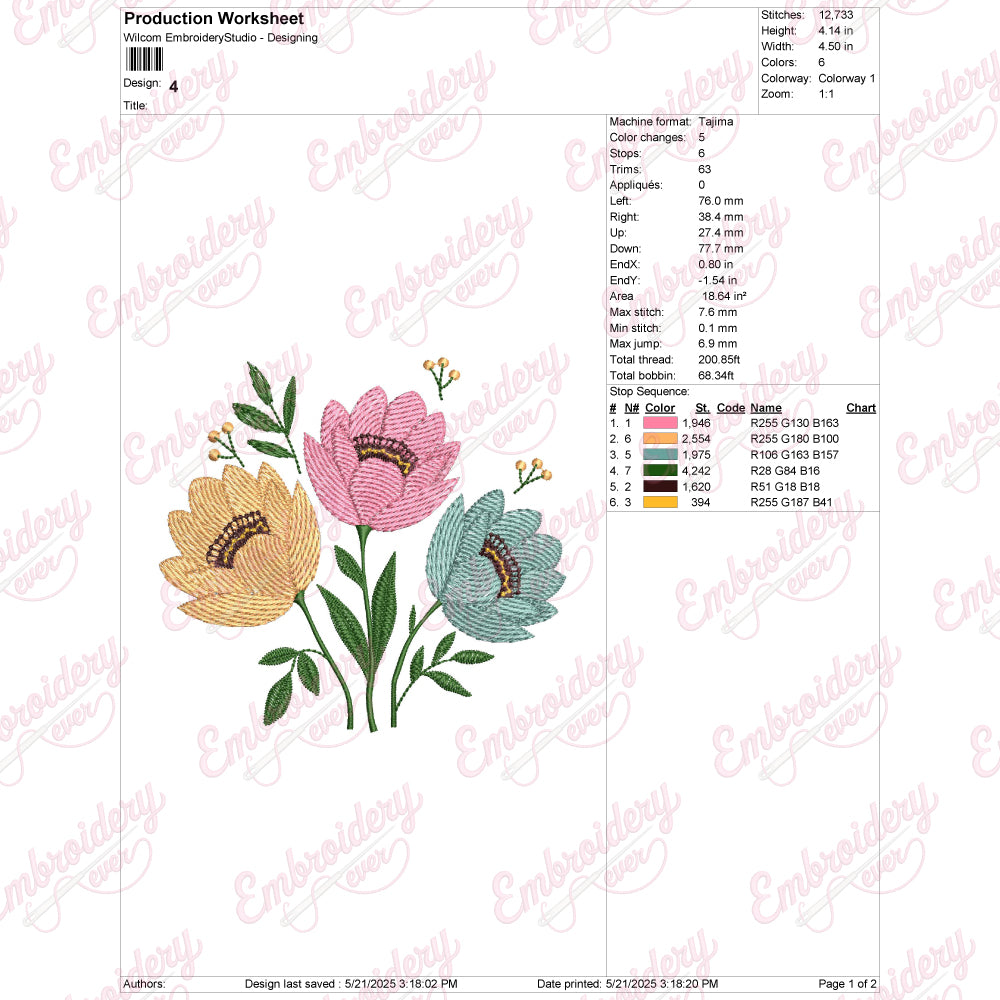The Gradient Floral Arrangement Embroidery Design showcases a sophisticated blend of colors that transition smoothly to create a visually stunning motif. Expertly crafted, this design features meticulously detailed petals and leaves, capturing the delicate nuances of natural florals. Its gradient shading adds dimension and depth, enhancing the embroidery's realism and elegance. Ideal for elevating garments, home textiles, or accessories, this design offers versatility for various fabric types and projects. The intricate stitch patterns ensure lasting durability while maintaining a refined appearance. Perfect for those seeking a professional-grade embroidery design that combines artistic beauty with technical precision.