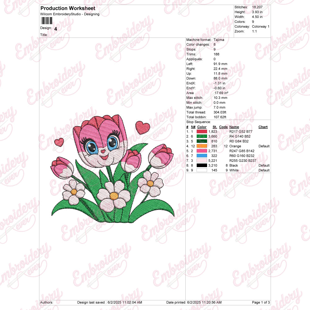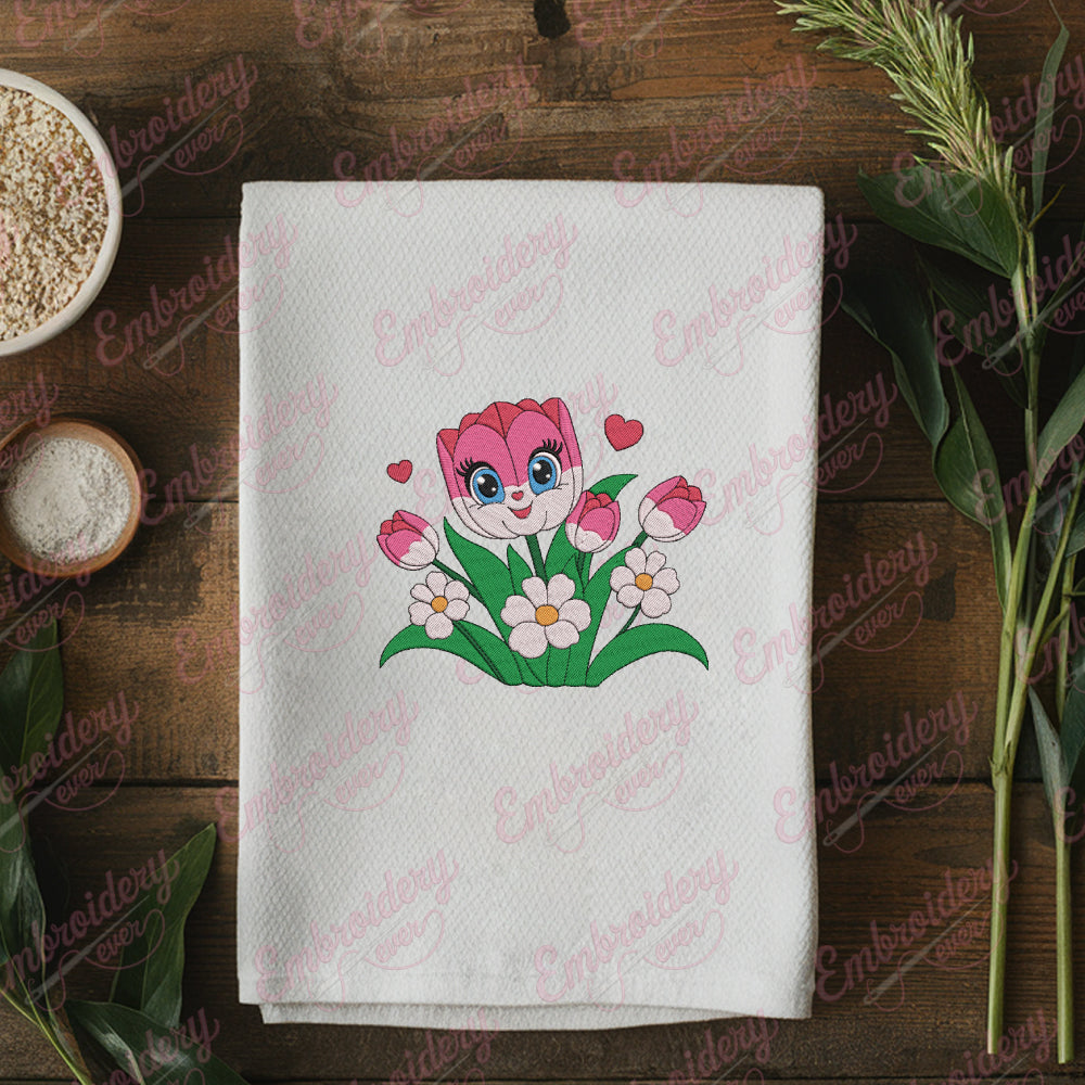 The Happy Tulip Flower With Face Embroidery Design offers a charming and whimsical touch to any fabric project. This expertly crafted embroidery pattern features a vibrant tulip with a joyful, expressive face, blending floral beauty with playful character. Ideal for enhancing garments, accessories, or home textiles, it brings a unique personality to your creations. The intricate detailing highlights the petals' natural curves while the facial expression adds warmth and cheerfulness, perfect for personalizing items or gifts. Designed for durability and precision, this embroidery ensures a clean, professional finish that stands out with both color and craftsmanship.