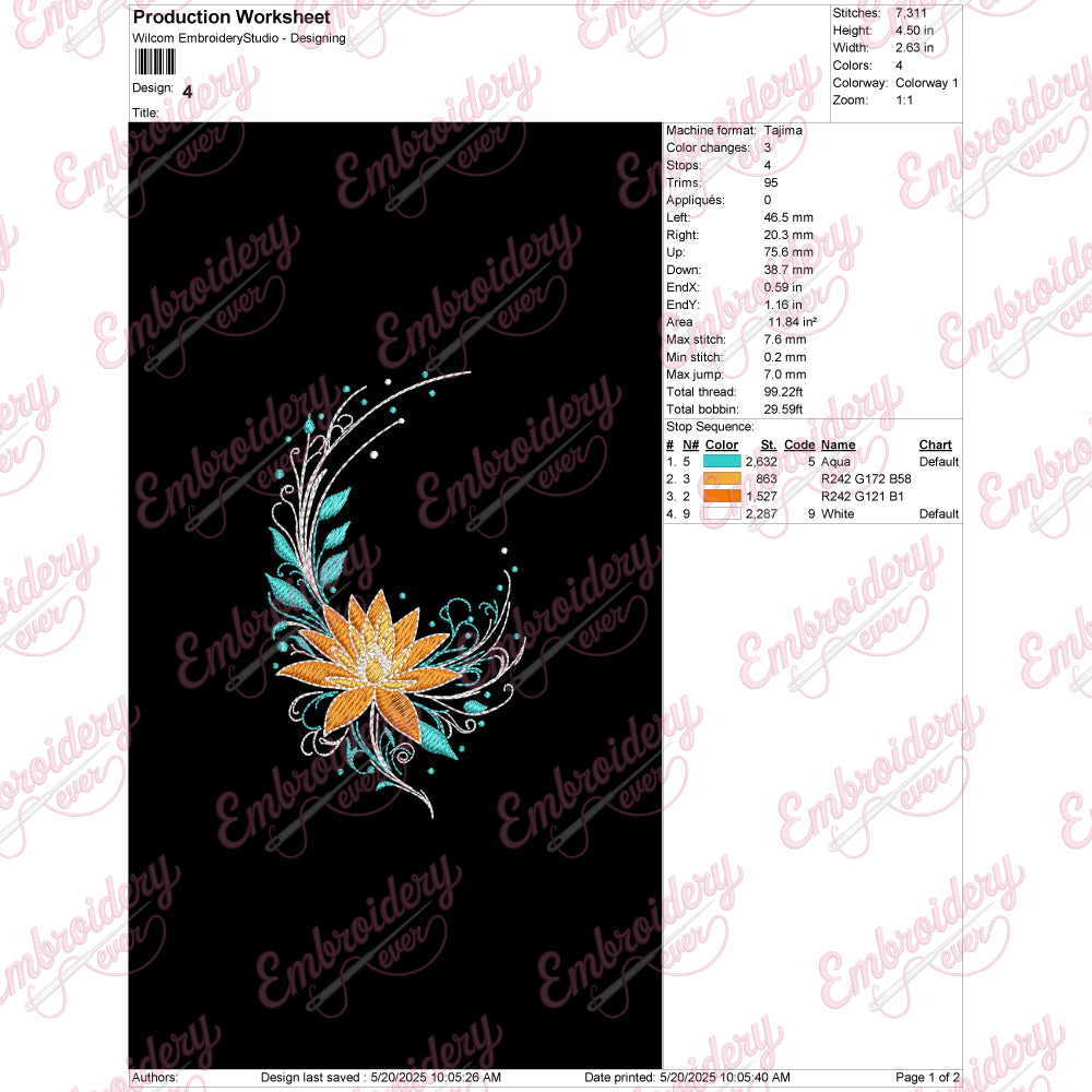 The Night Bloom Embroidery Design captures the delicate beauty of nocturnal flowers in exquisite detail. Crafted for expert embroiderers, this design features intricate floral patterns that showcase fine stitching techniques, allowing for depth and texture that bring the night bloom to life. Perfect for enhancing garments, home textiles, or accessories, this design offers a sophisticated touch while maintaining versatility across various fabric types. Its balanced composition and detailed outlines enable precise thread placement, resulting in a stunning visual effect that stands out under different lighting conditions. Ideal for projects demanding both artistry and technical skill, the Night Bloom Embroidery Design elevates your craft with timeless elegance.