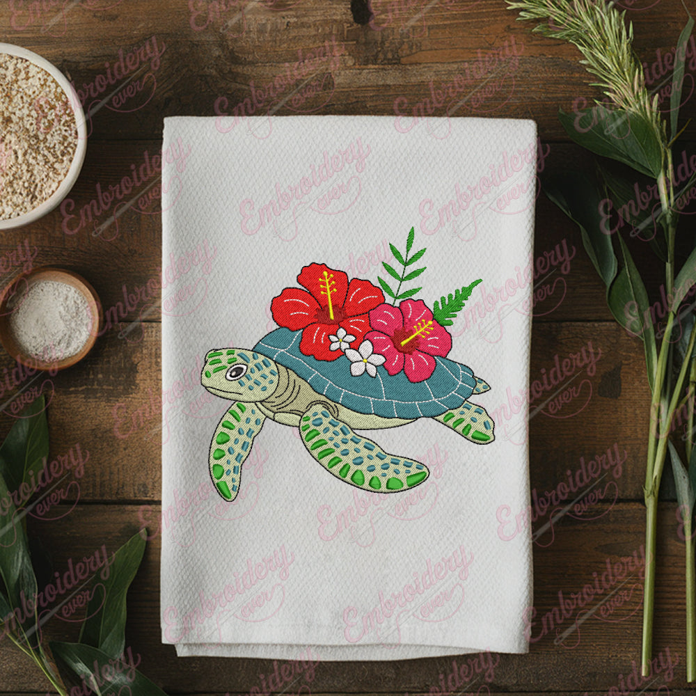 Let your creativity shine with this delightful Sea Turtle With flower embroidery design!