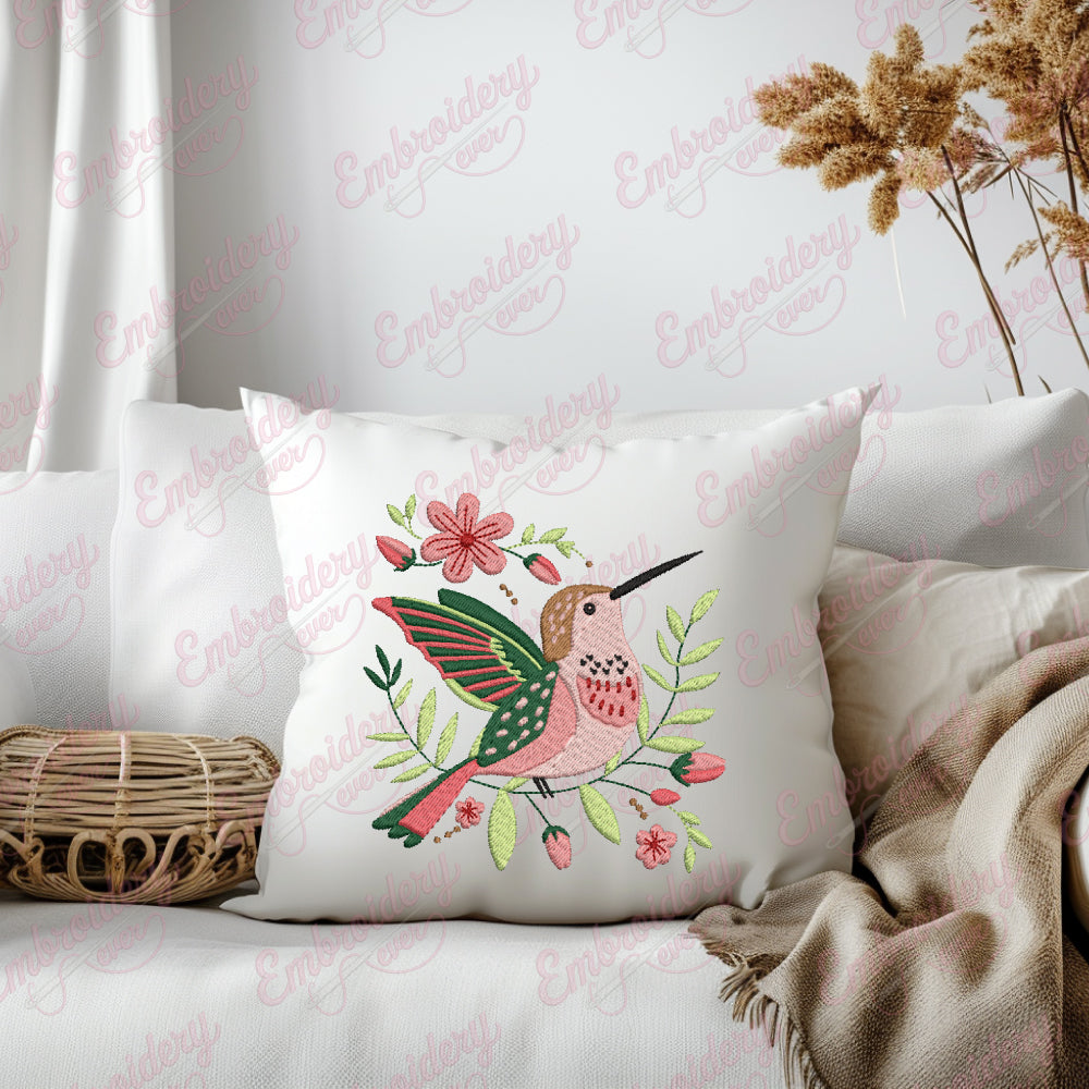 The Tropical Leaves and Flowers with Bird Embroidery Design captures the vibrant essence of a lush tropical environment with intricate detailing. This design features a harmonious blend of exotic leaves and colorful flowers, complemented by a delicately embroidered bird that adds a dynamic focal point. Crafted with precision, the embroidery showcases fine stitch work that highlights texture and depth, making it ideal for enhancing garments, home décor, or accessories. Its rich color palette and natural motifs bring a sophisticated yet lively touch, perfect for those seeking to infuse their projects with a refined tropical aesthetic. This design balances artistry and elegance, suitable for expert crafters aiming for standout embroidery pieces.