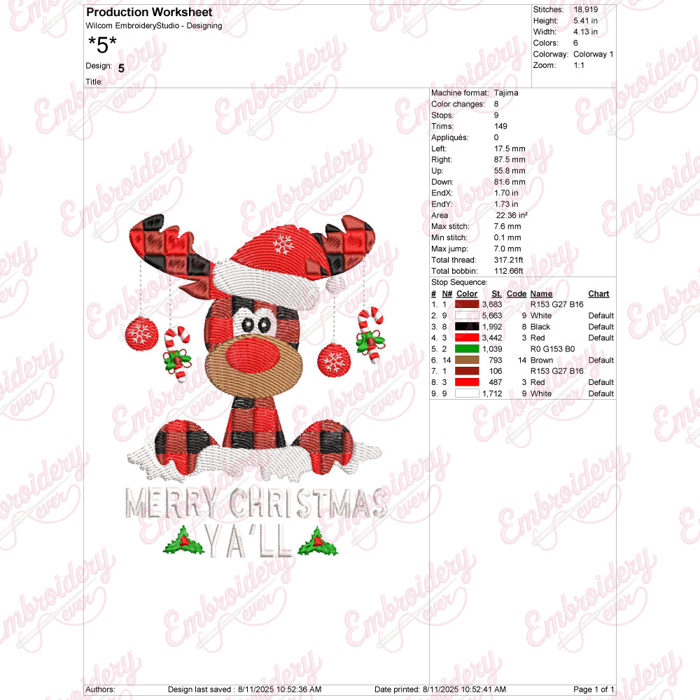 Let your creativity shine with this delightful Merry Christmas Y'all Reindeer Free Digital Embroidery Design!