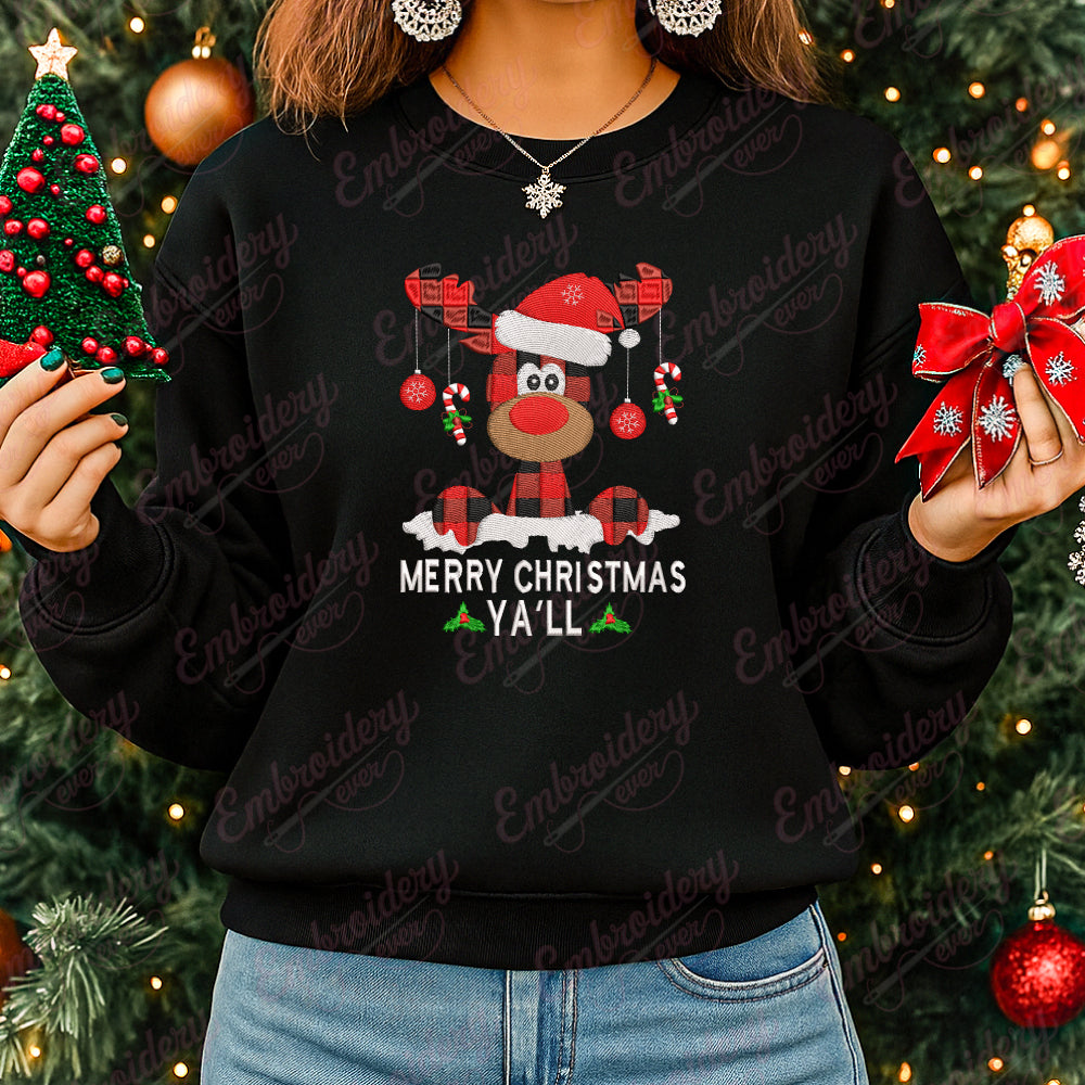 Celebrate the festive season with the Merry Christmas Y'all Reindeer digital embroidery design. This expertly crafted pattern features charming reindeer and seasonal greetings, perfect for adding a personalized holiday touch to your projects. Instantly downloadable and free, it offers convenience and quality for embroidery enthusiasts looking to create memorable gifts and decorations with professional detail.