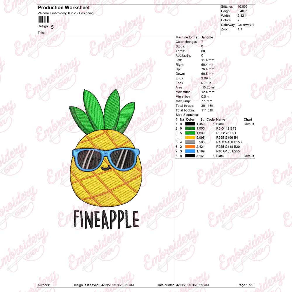Let your creativity shine with this delightful Fineapple Funny Pineapple embroidery design!