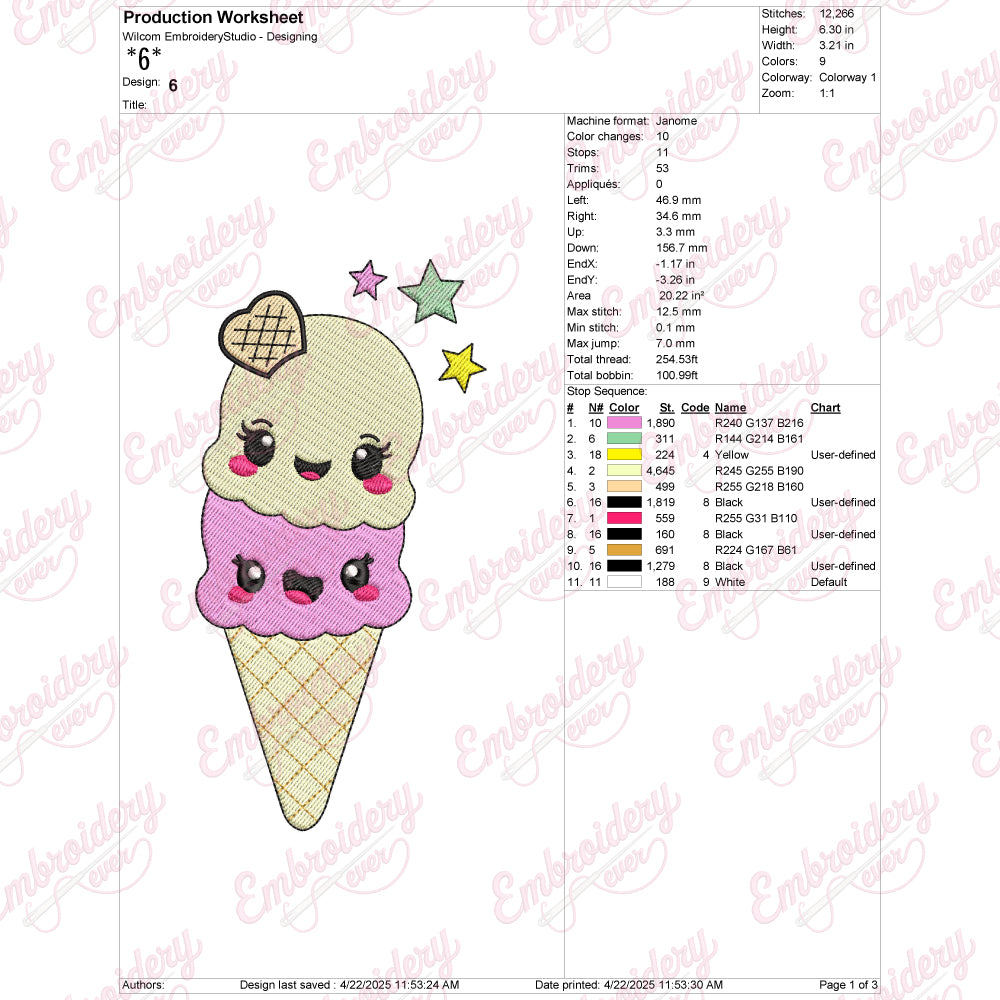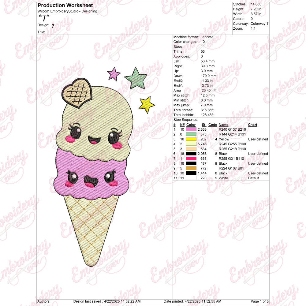 Let your creativity shine with this delightful Ice Cream embroidery design!