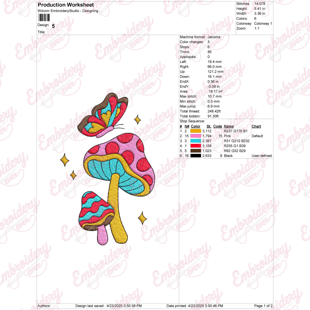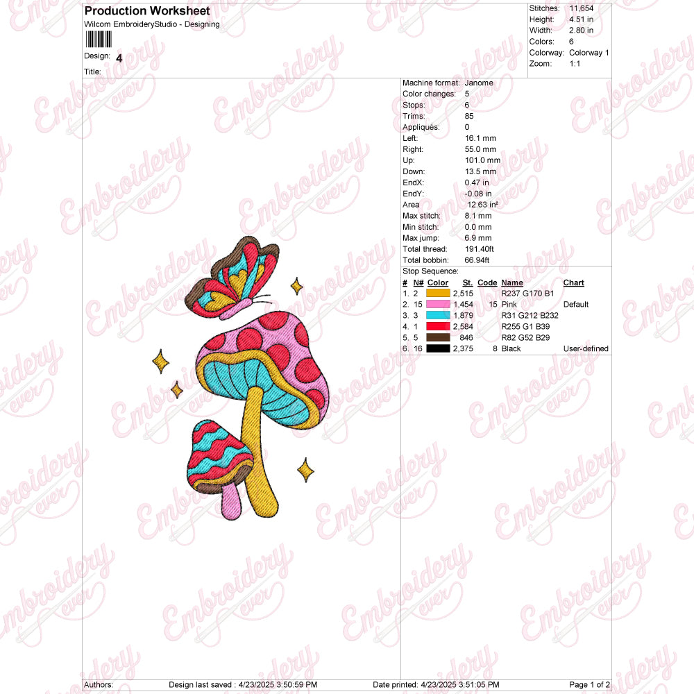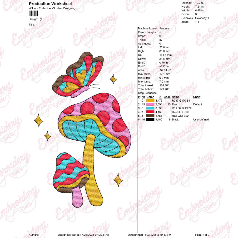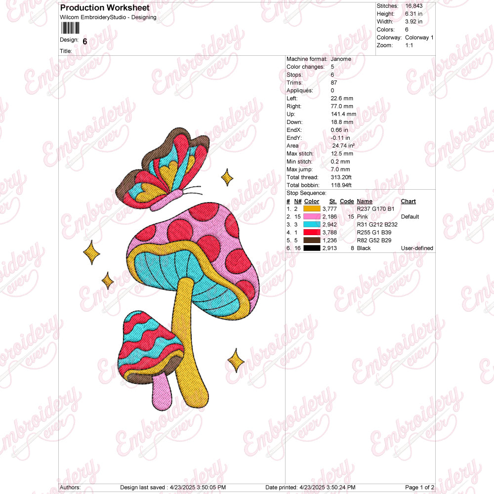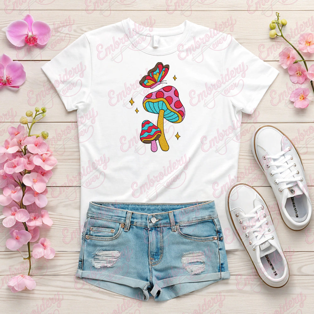 Let your creativity shine with this delightful Mushroom With Butterflies embroidery design!