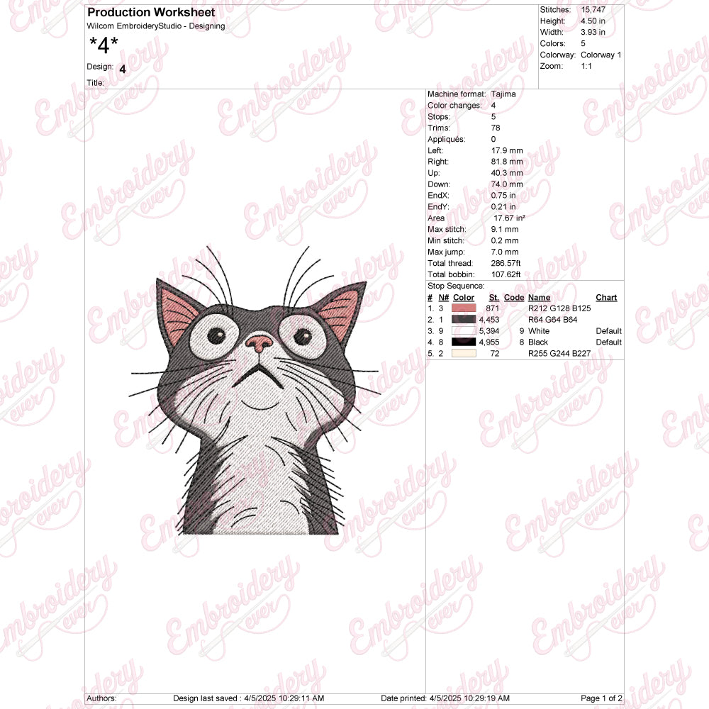 The Funny Cat Looking Upwards Embroidery Design captures the whimsical charm of a curious feline gazing skyward with playful intent. Expertly crafted, this design features intricate stitching that highlights the cat’s expressive eyes and textured fur, bringing a lively character to any fabric. Ideal for adding a touch of humor and personality to apparel, accessories, or home décor, this embroidery pattern is versatile and easy to apply. Its detailed craftsmanship ensures durability and a polished finish, making it perfect for both beginners and experienced embroiderers seeking to enhance their projects with a unique, engaging motif.