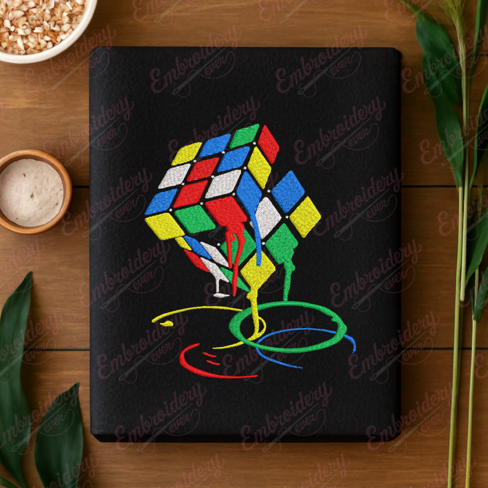 The Melting Rubik Cube Embroidery Design offers a unique blend of classic puzzle imagery with a modern, artistic twist. This design features a Rubik’s Cube appearing to melt, creating a dynamic visual effect that captures attention and sparks curiosity. Expertly crafted with intricate stitch details, it highlights the cube’s iconic colors while adding fluid, melting contours that suggest movement and transformation. Ideal for embroidery enthusiasts seeking a contemporary and playful motif, this design works perfectly on apparel, accessories, or home textiles. Its detailed pattern ensures a striking finish that elevates any fabric with a touch of creativity and sophistication.