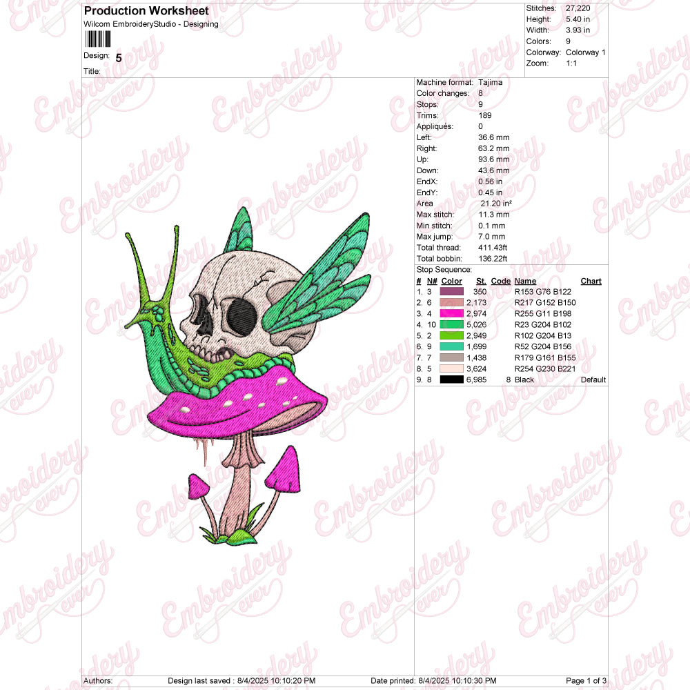 Skull Snail On Mushroom Digital Download Machine Embroidery Design