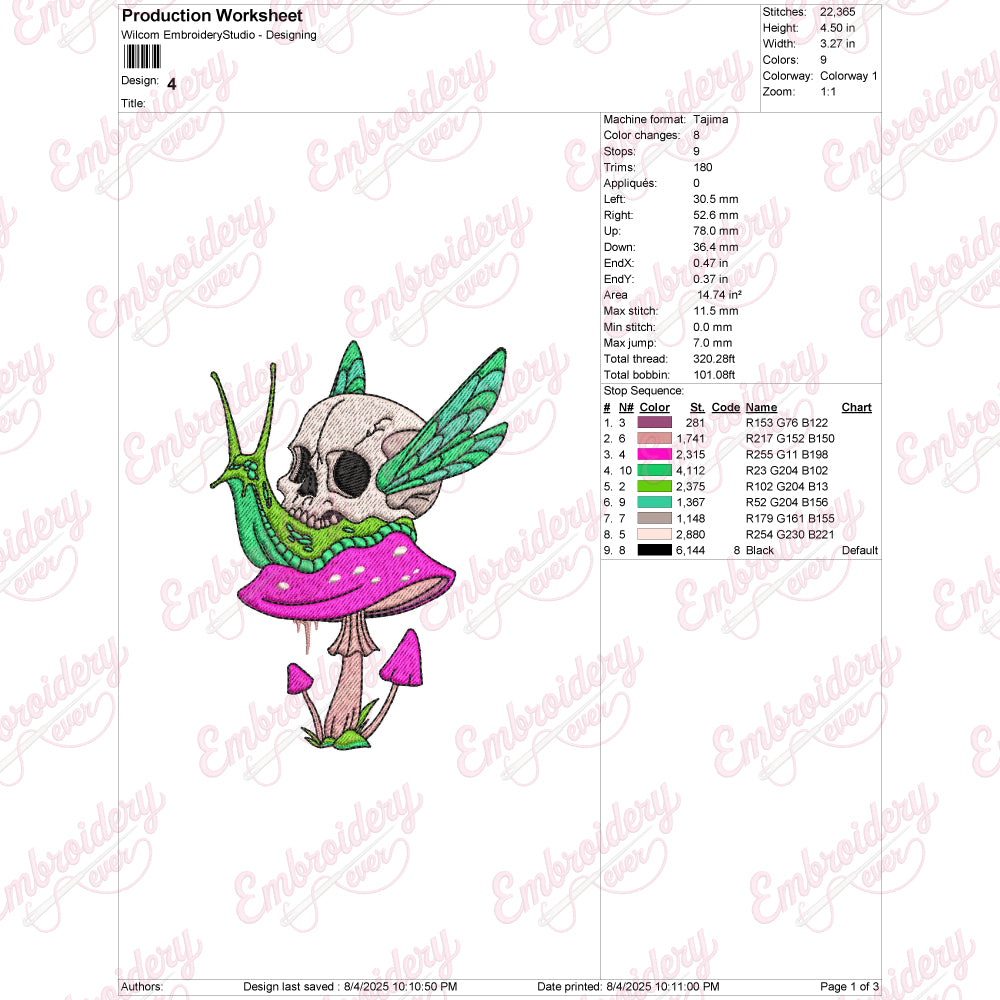 Let your creativity shine with this delightful Skull Snail On Mushroom embroidery design!