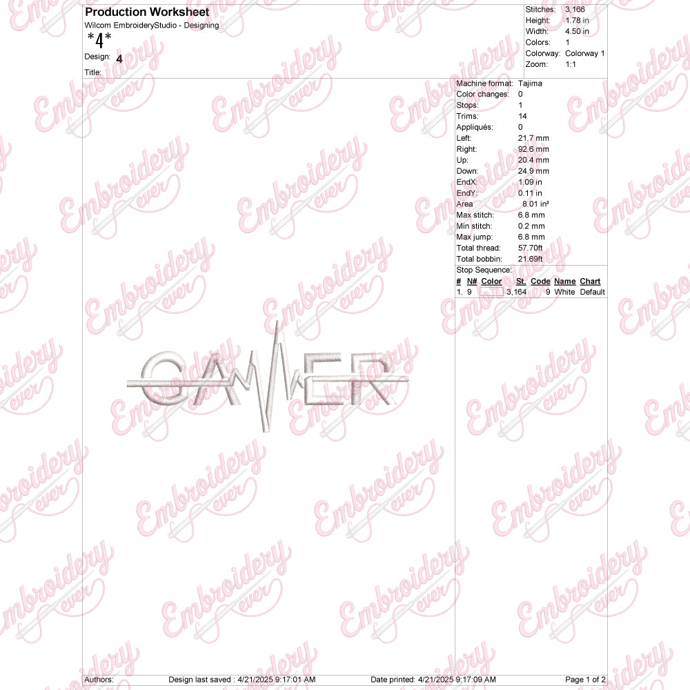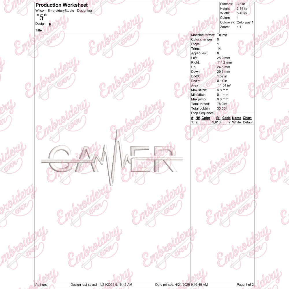 Let your creativity shine with this delightful Gamer Heartbeat embroidery design!