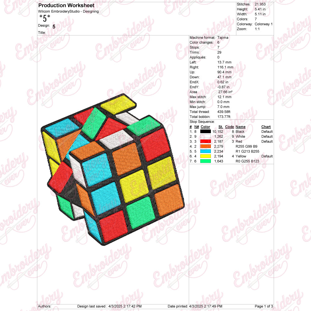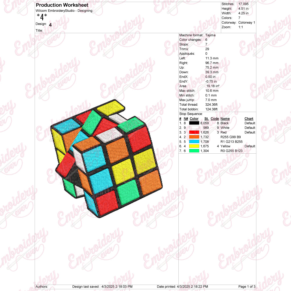Let your creativity shine with this delightful Rubik's Cube Puzzle embroidery design!