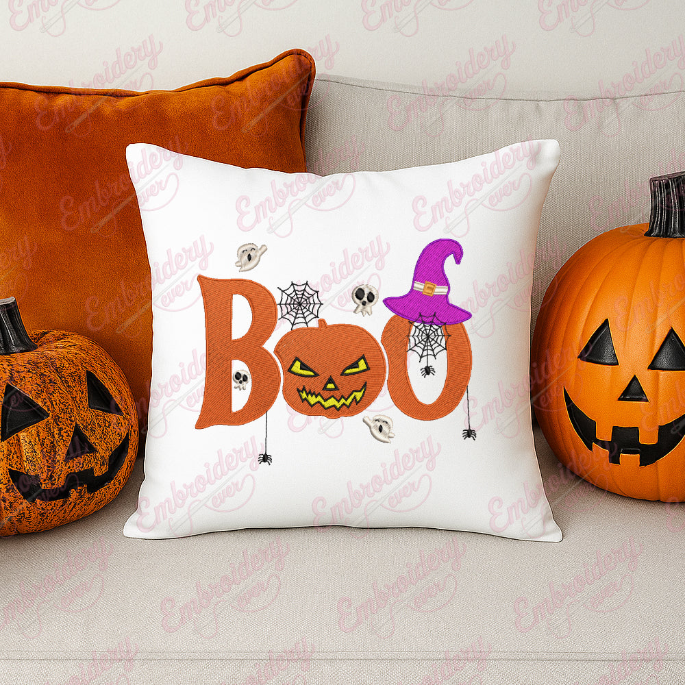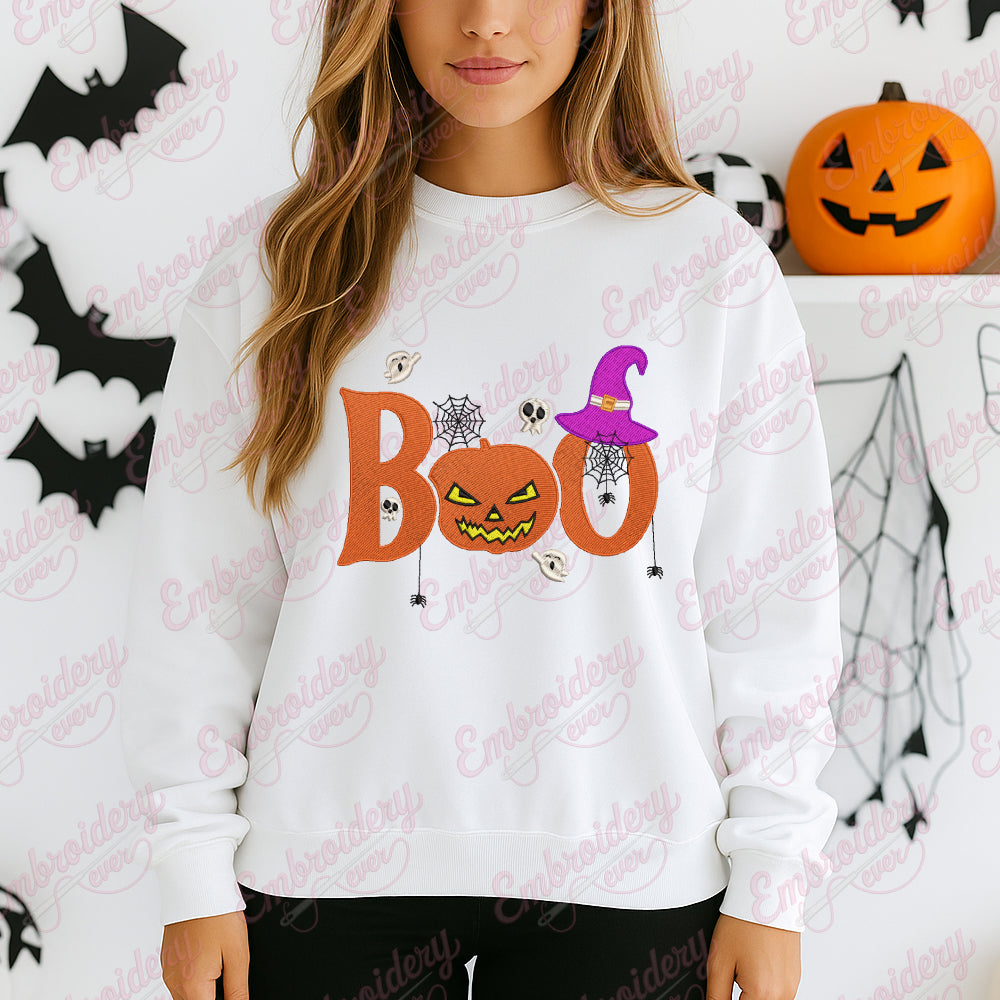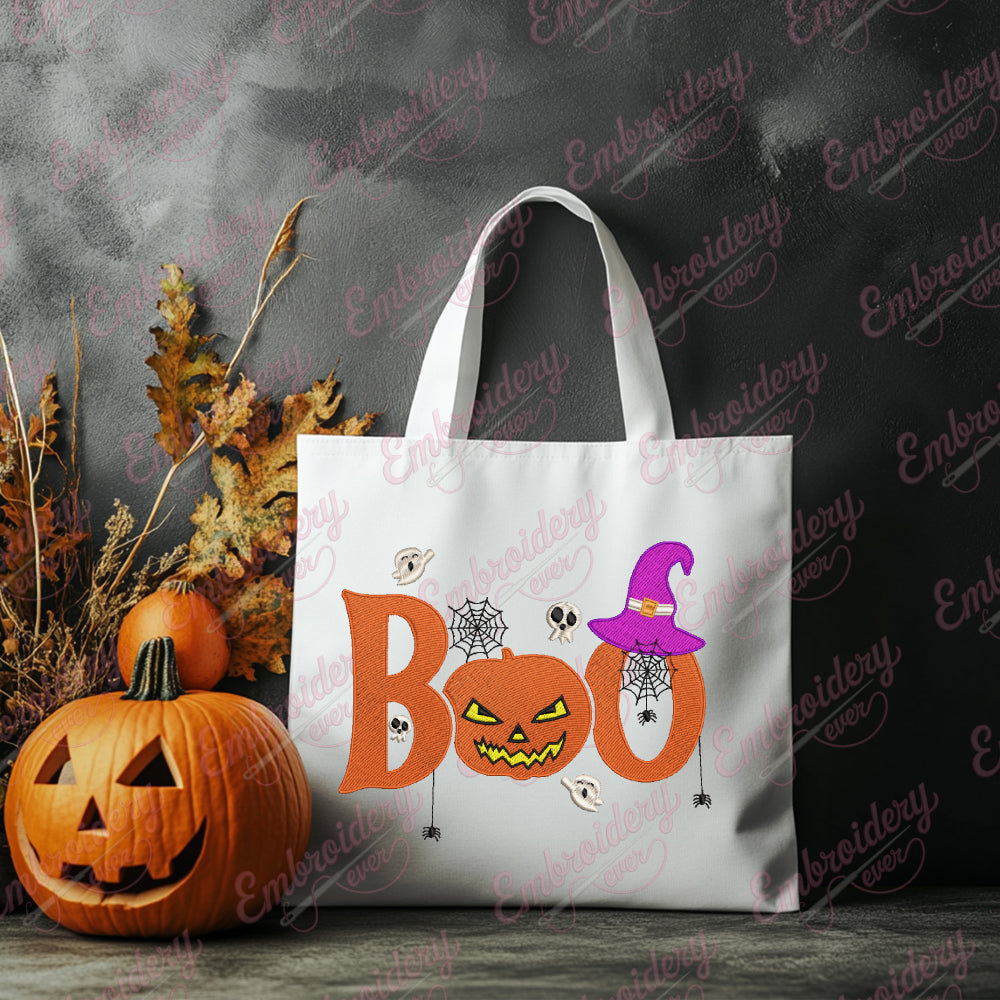Celebrate the spooky season with the Boo Halloween Embroidery Design, perfectly crafted for those who appreciate detailed and festive needlework. This design features an intricately styled "Boo" lettering paired with classic Halloween motifs such as ghosts, pumpkins, and cobwebs, blending traditional Halloween imagery with clean, expert craftsmanship. Created with precise stitch patterns, it ensures smooth stitching on a variety of fabric types, making it ideal for decorating apparel, home décor, or accessories. Its balanced complexity allows both experienced and intermediate embroiderers to achieve professional results, bringing a charming Halloween spirit to your handmade projects.