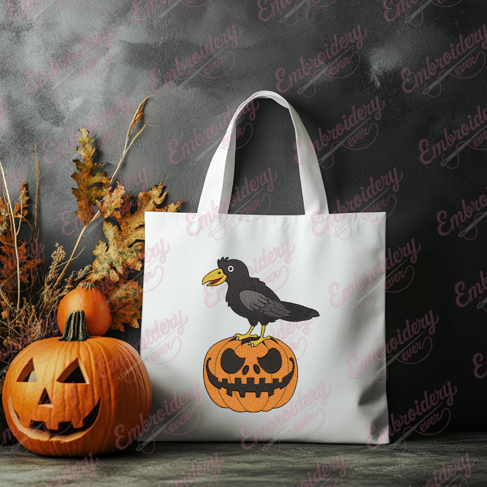 Let your creativity shine with this delightful Crow On Halloween Pumpkin embroidery design!