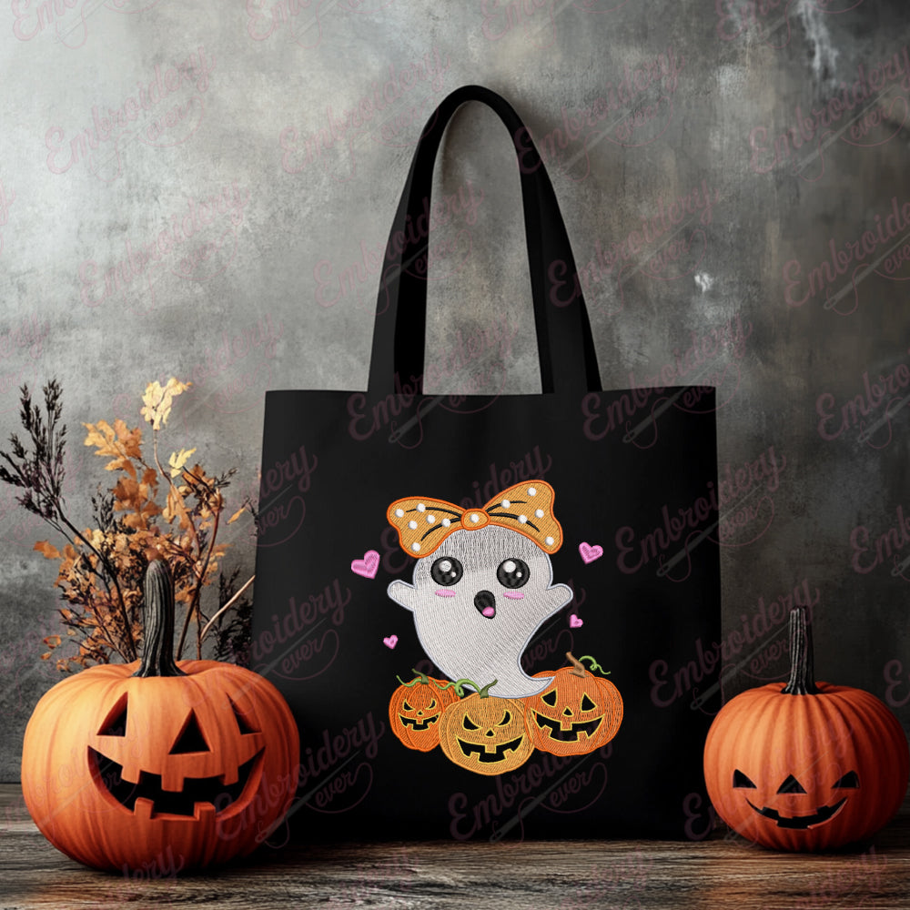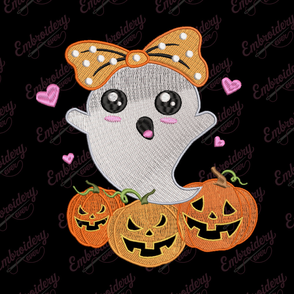 Cute Ghost in Pumpkin Digital Download Machine Embroidery Design
