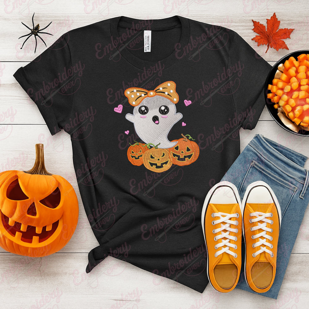 The Cute Ghost In Pumpkin Halloween Embroidery Design captures the playful spirit of Halloween with a charming ghost nestled inside a detailed pumpkin. Crafted to deliver crisp lines and intricate shading, this design is perfect for adding a festive touch to seasonal garments, home décor, or personalized gifts. The contrast between the soft, friendly ghost and the textured pumpkin creates visual depth that stands out beautifully on various fabric types. Designed with high stitch quality, it ensures durability through multiple washes while maintaining vibrant colors. Ideal for embroidery enthusiasts aiming to celebrate Halloween with a unique yet approachable design.