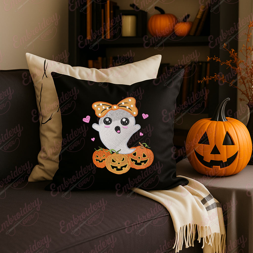 Let your creativity shine with this delightful Cute Ghost in Pumpkin embroidery design!
