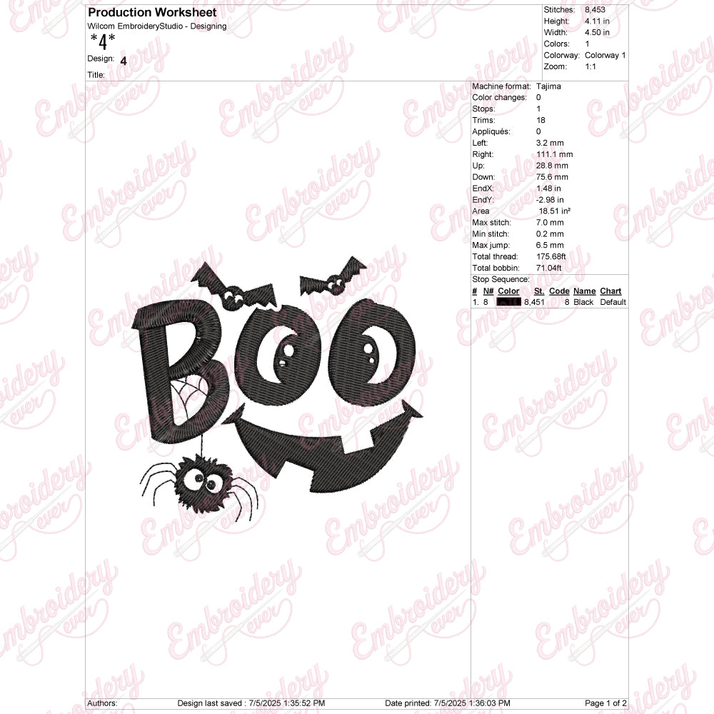The Halloween Boo Costume Embroidery Design is a meticulously crafted pattern ideal for adding a festive touch to costumes and apparel. Featuring bold, clear lettering combined with playful ghostly elements, this design captures the spooky yet fun spirit of Halloween. Created with precision, it ensures crisp stitching on a variety of fabric types, making it perfect for costumes, bags, or themed accessories. Its versatile size allows for easy integration on different garment areas, enhancing Halloween outfits with professional-quality embroidery. This design not only elevates your holiday wear but also offers durability through carefully optimized stitch density, guaranteeing long-lasting festive charm.