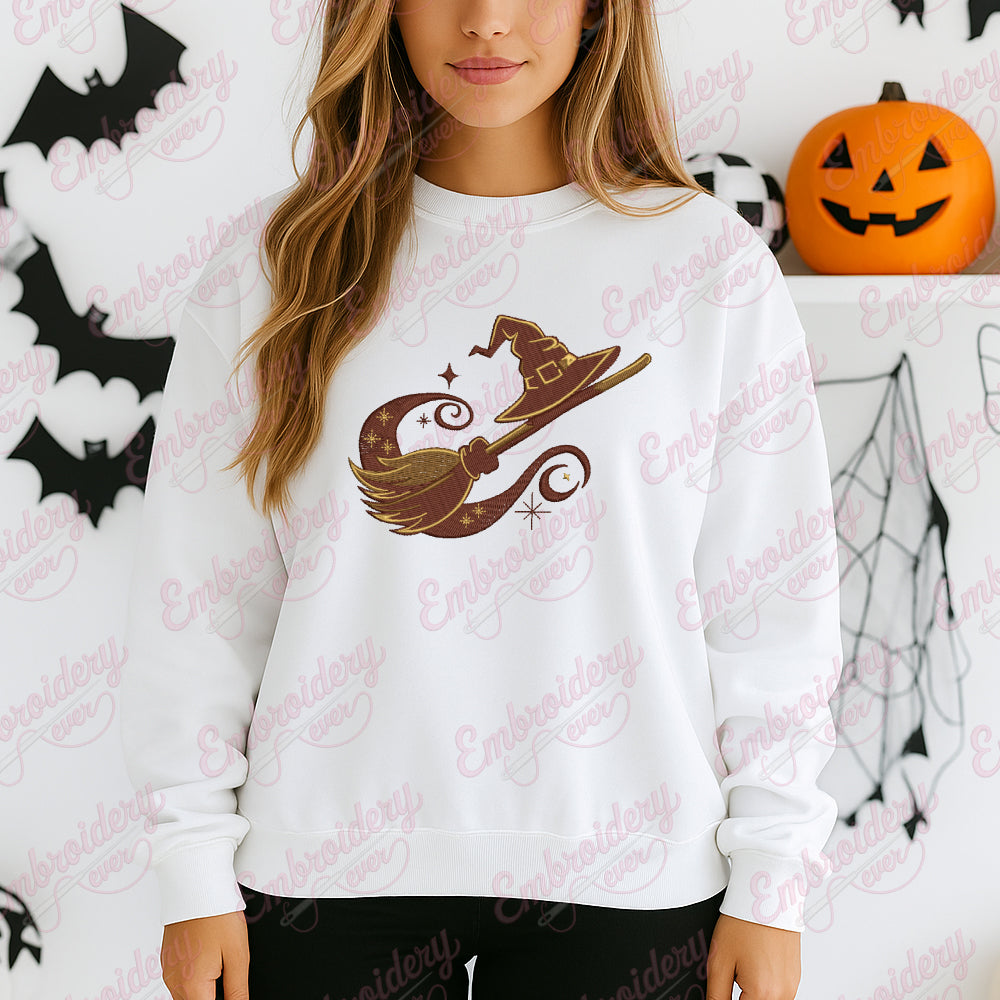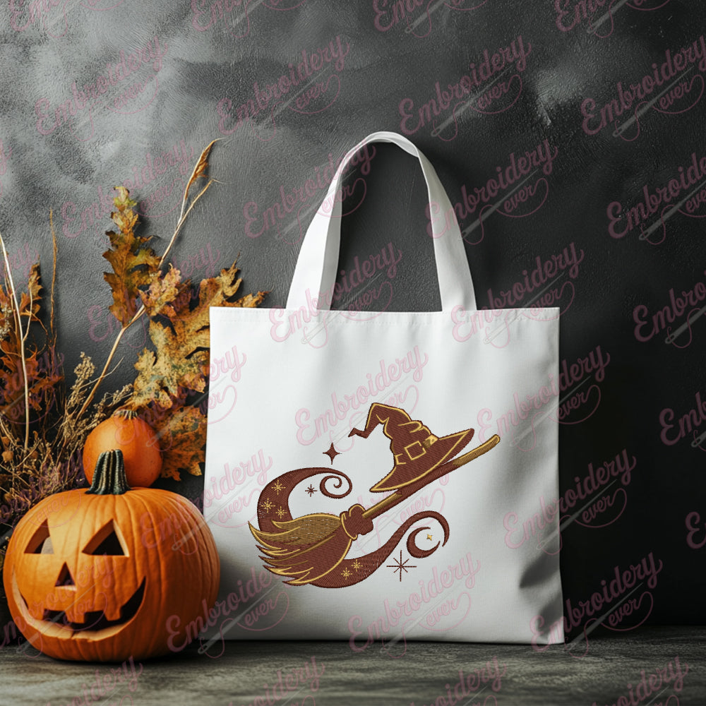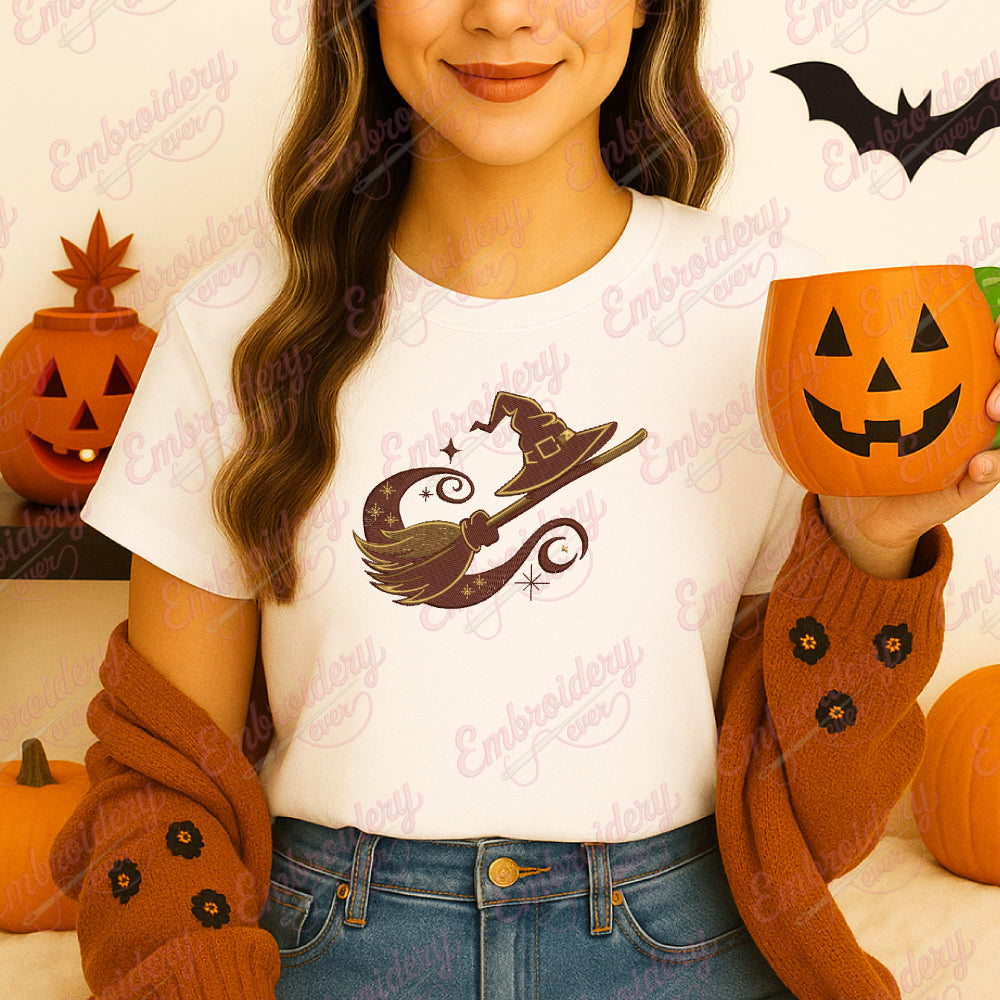 Let your creativity shine with this delightful Broom Witch Hat embroidery design!