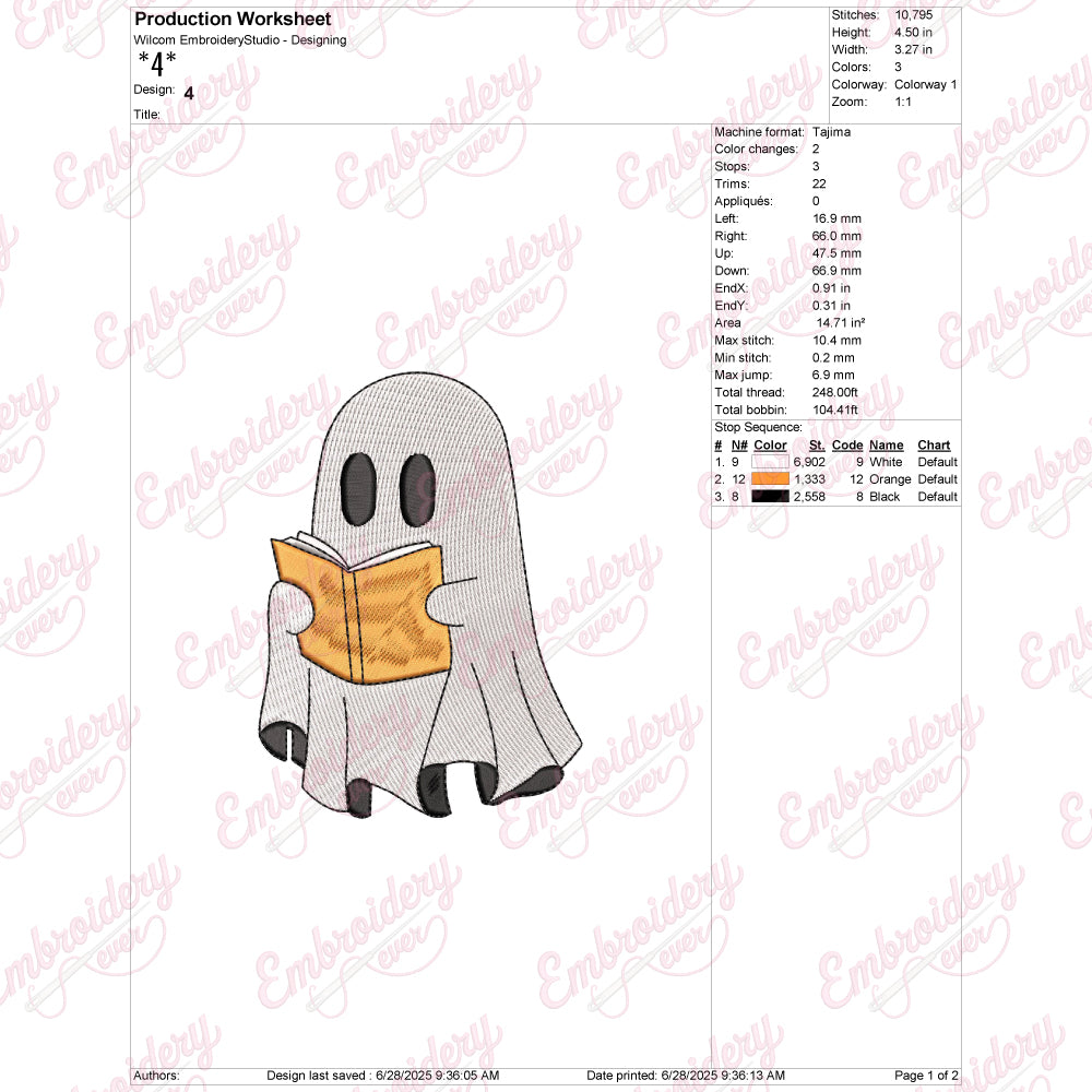 Ghost Reading A Book Digital Download Machine Embroidery Design