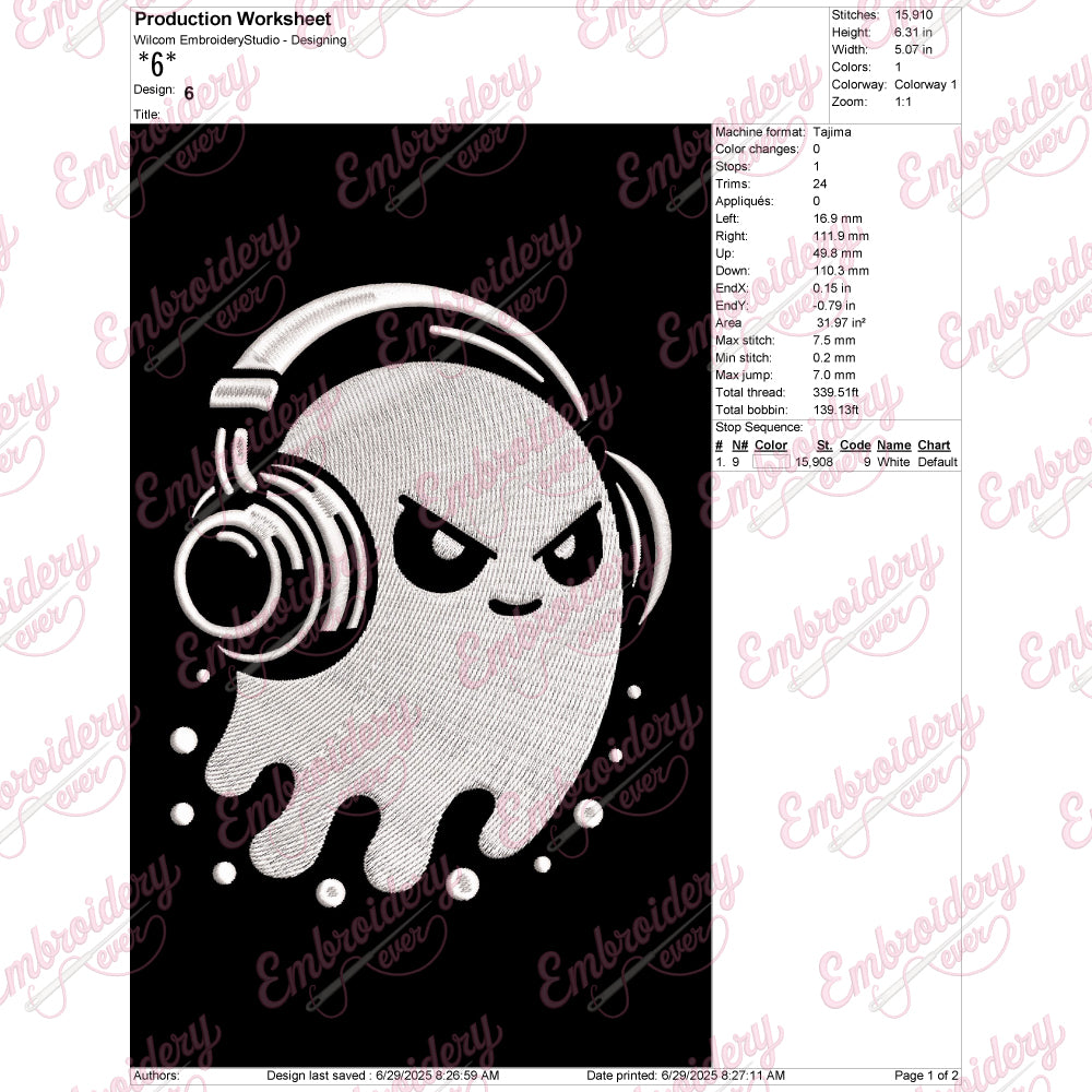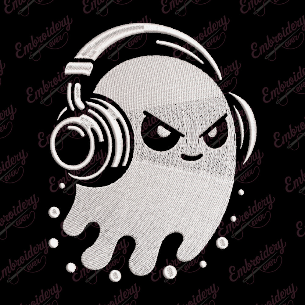 Ghost With Headphones Digital Download Machine Embroidery Design