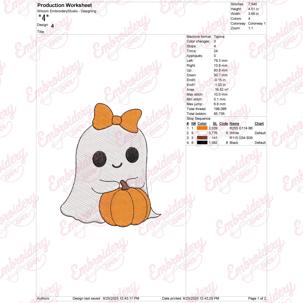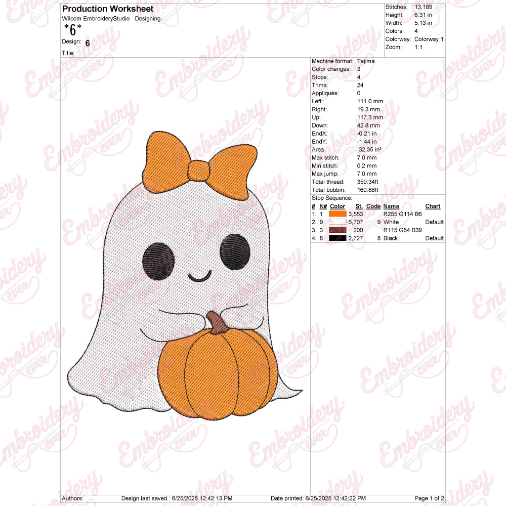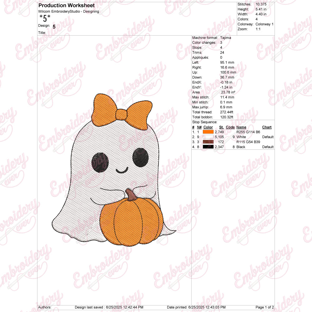 The Halloween Ghost With Pumpkin Embroidery Design captures the perfect festive spirit with expert craftsmanship and intricate detail. This design features a charming ghost character holding a classic carved pumpkin, blending spooky and playful elements seamlessly. The embroidery’s precise stitch work highlights delicate contours and textured fills, ensuring durability and vividness after repeated washes. Ideal for seasonal apparel, accessories, or home décor, this design adds a touch of Halloween cheer while maintaining a refined aesthetic. Its balanced composition and clear lines make it suitable for various fabric types, offering versatility for embroidery enthusiasts and professionals seeking a high-quality seasonal motif.