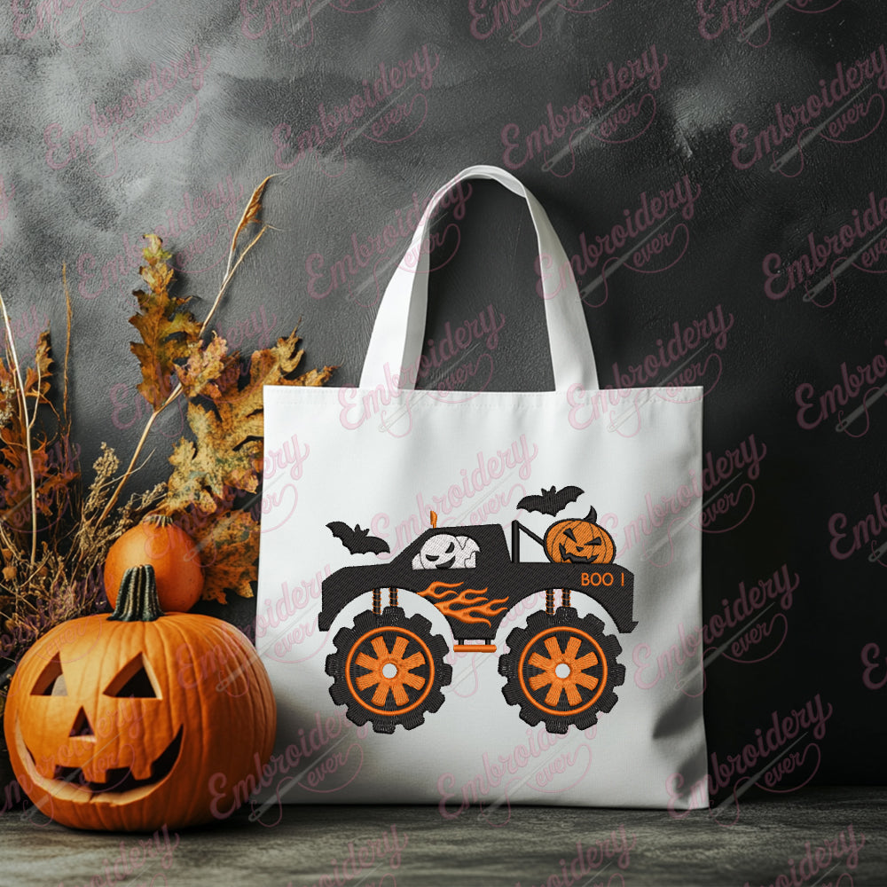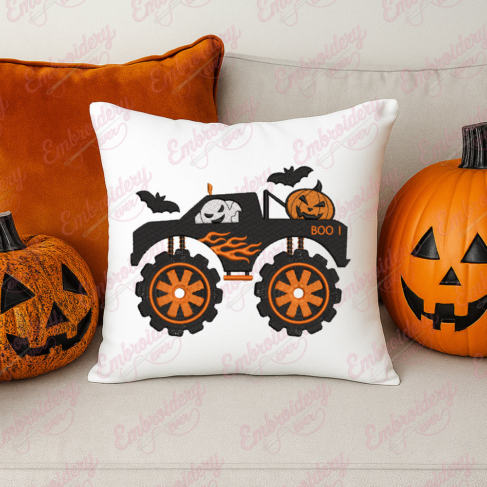 The Halloween Monster Truck Embroidery Design captures the thrilling spirit of Halloween with a bold and dynamic motif perfect for enthusiasts of monster trucks and spooky themes alike. This expertly crafted digital embroidery pattern features a fierce monster truck adorned with classic Halloween elements such as pumpkins, eerie shadows, and intricate webbing details. Designed for machine embroidery, it offers precise stitch alignment to ensure crisp, detailed results on a variety of fabric types. Ideal for customizing apparel, home decor, or accessories, this design combines seasonal festivity with rugged vehicle imagery, making it a unique choice for holiday projects or themed gifts. Its high-resolution stitching data supports smooth transitions and vibrant color effects, elevating any embroidery project with professional appeal.