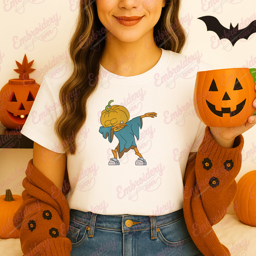 Celebrate the spooky season with the Halloween Scarecrow Doing the Dab Embroidery Design, a unique and playful addition to your embroidery collection. This design features a charming scarecrow striking the popular dab pose, blending traditional Halloween motifs with contemporary flair. Crafted with intricate stitch work, it highlights detailed elements such as the scarecrow’s textured hat, stitched patches, and hay accents, bringing depth and character to your project. Perfect for customizing apparel, accessories, or home décor, this design adds a fun, festive twist that is sure to catch attention. Its clear, precise lines ensure excellent stitch quality, making it suitable for various fabric types and embroidery machines.