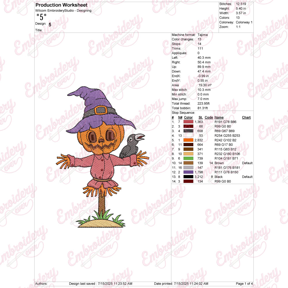 The Halloween Scarecrow Embroidery Design captures the eerie charm of autumn’s most anticipated holiday with intricate detail and expert craftsmanship. This design features a classic scarecrow adorned with tattered clothing and a mischievous grin, perfect for adding a touch of Halloween spirit to your projects. Ideal for garments, home décor, or festive accessories, it boasts precise stitching that highlights textures such as straw, fabric patches, and rustic details. Suitable for a variety of embroidery machines, this design enhances your seasonal creations with a blend of whimsy and spookiness, making it an essential addition for any embroidery enthusiast looking to celebrate Halloween in style.