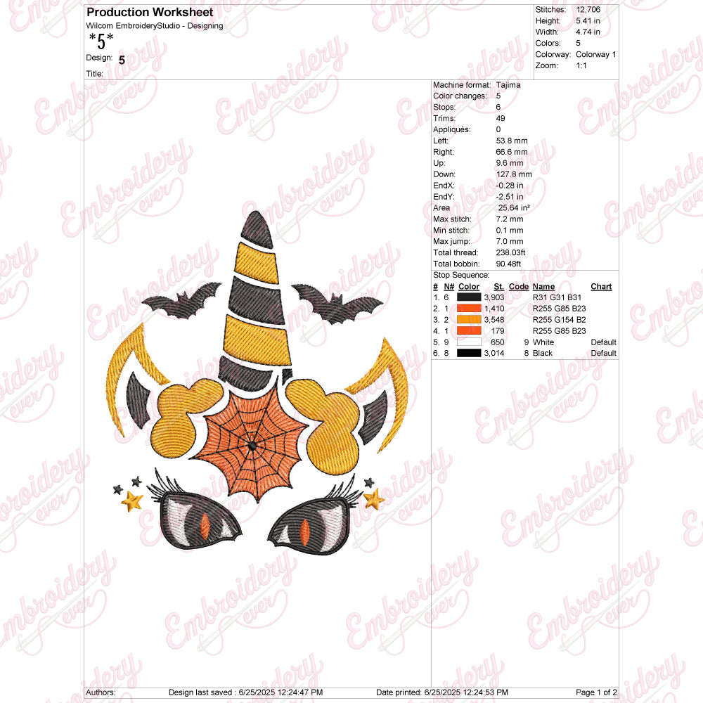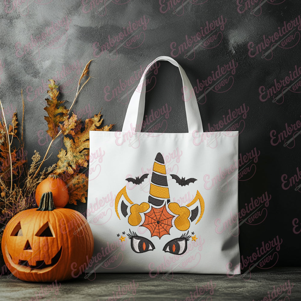 Celebrate the magic of Halloween with the Halloween Unicorn Face Embroidery Design, a perfect blend of whimsy and seasonal spirit. This intricate design features a charming unicorn face adorned with classic Halloween elements such as a pointed witch hat, subtle spider webs, and haunting yet captivating eyes. Crafted with expert attention to detail, this embroidery pattern offers vibrant stitching that highlights every contour and accent, making it ideal for decorating apparel, accessories, or home textiles. Suitable for a range of fabric types, this design brings fantasy and festivity together, allowing your creative projects to stand out with a unique, enchanting Halloween theme.