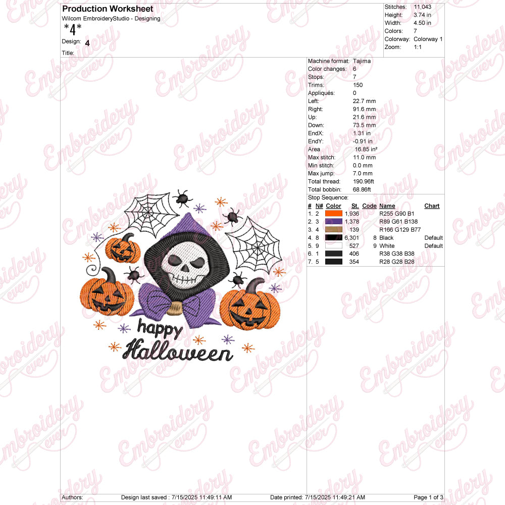 Celebrate the Halloween season with the Happy Halloween Spooky Machine Embroidery Design, expertly crafted to bring festive charm to your projects. This detailed embroidery design features classic spooky elements such as pumpkins, ghosts, and eerie accents, allowing you to create unique decorations, apparel, or accessories that capture the spirit of Halloween. Ideal for use on garments, bags, or home décor, this design combines intricate stitching with clear outlines to ensure a polished and professional finish. Compatible with most embroidery machines, it offers versatility and ease of use for both hobbyists and experienced embroiderers looking to enhance their Halloween collection.