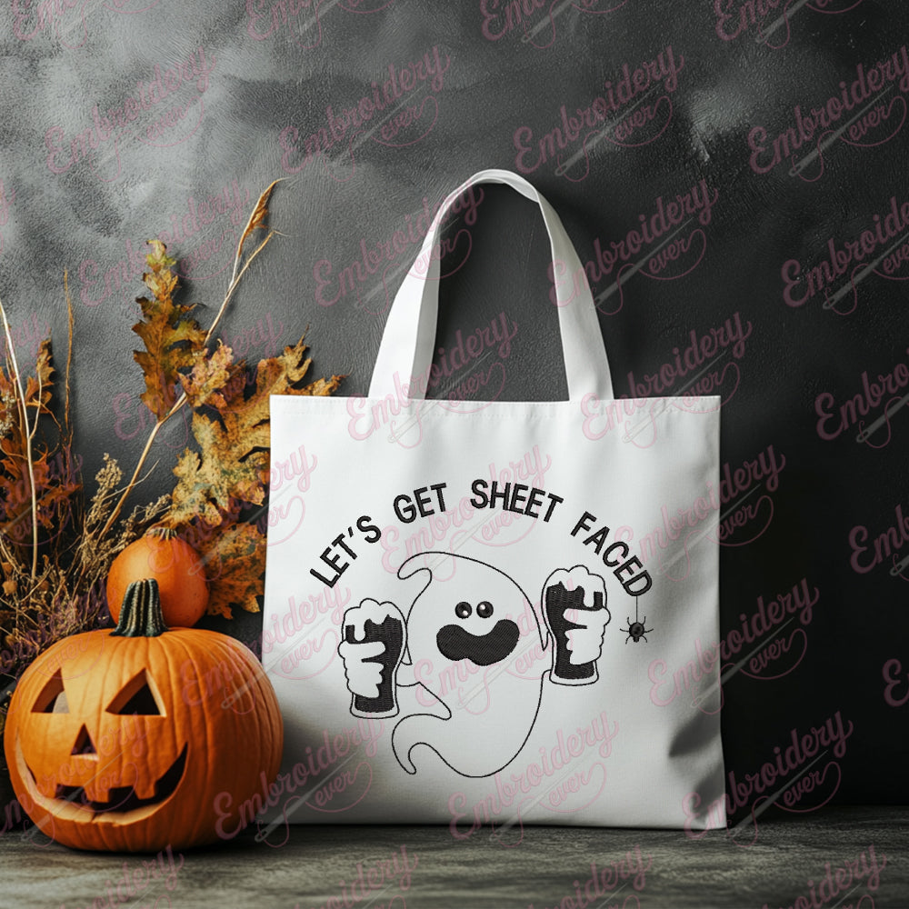 The "Let's Get Sheet Faced Halloween Embroidery Design" offers a playful yet expertly crafted embroidery pattern perfect for Halloween enthusiasts looking to add a festive touch to their fabric projects. This design features a cleverly stylized ghost motif paired with bold, whimsical typography that reads "Let's Get Sheet Faced," blending humor and holiday spirit seamlessly. Ideal for decorating apparel, accessories, or home decor, it elevates your Halloween creations with crisp detail and vibrant stitching potential. Suitable for both advanced and intermediate embroiderers, this design ensures clean, eye-catching results on a variety of fabric types, making your seasonal crafting both fun and professional-grade.