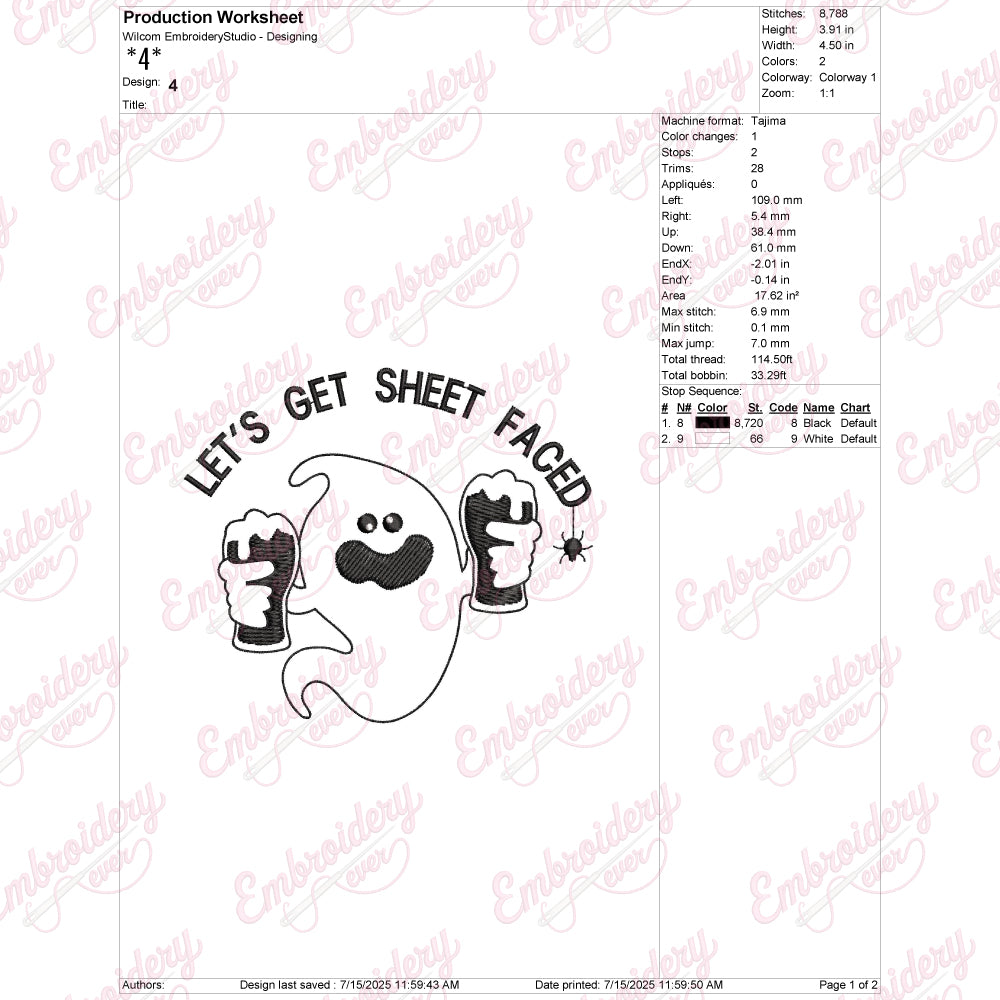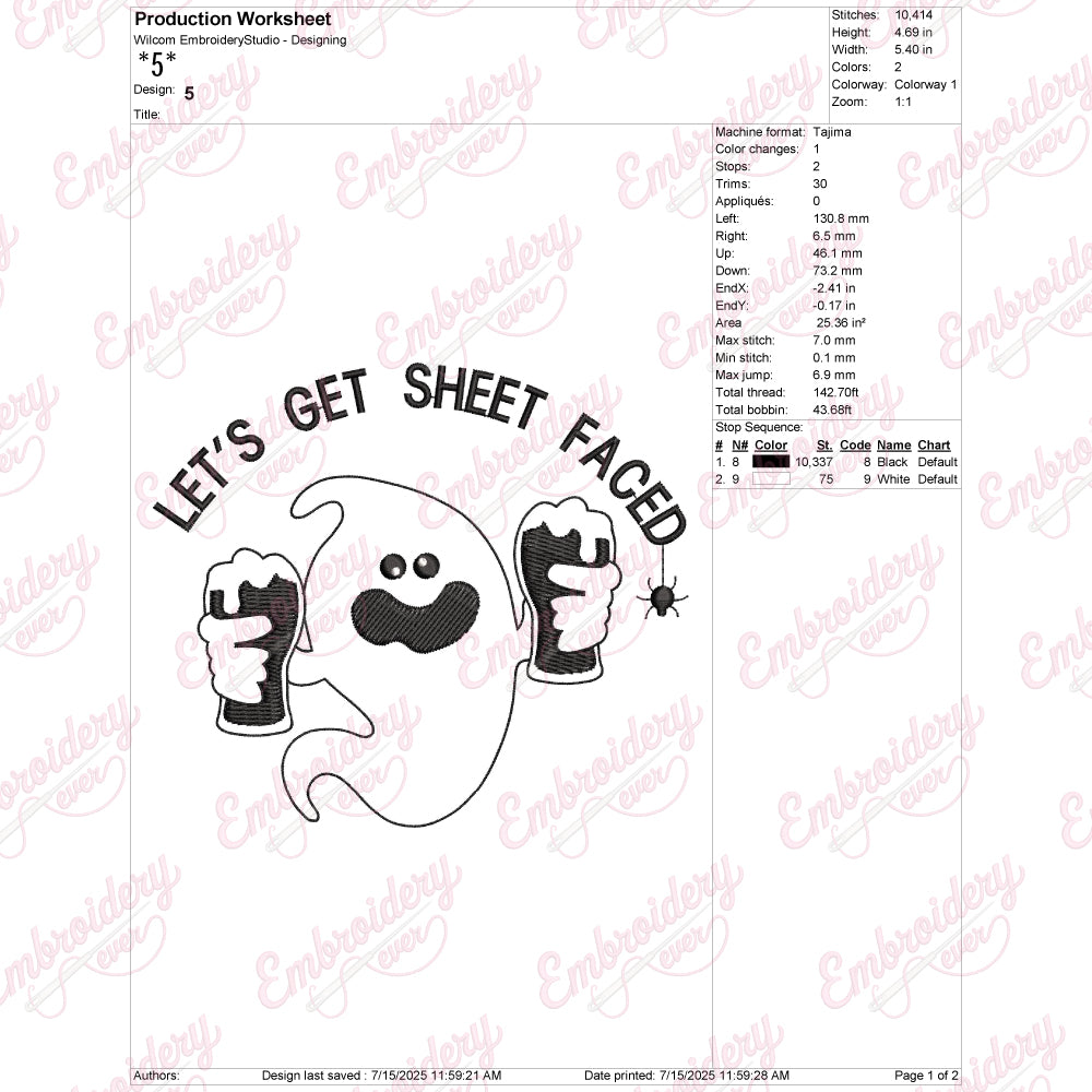 Let's Get Sheet Faced Digital Download Machine Embroidery Design
